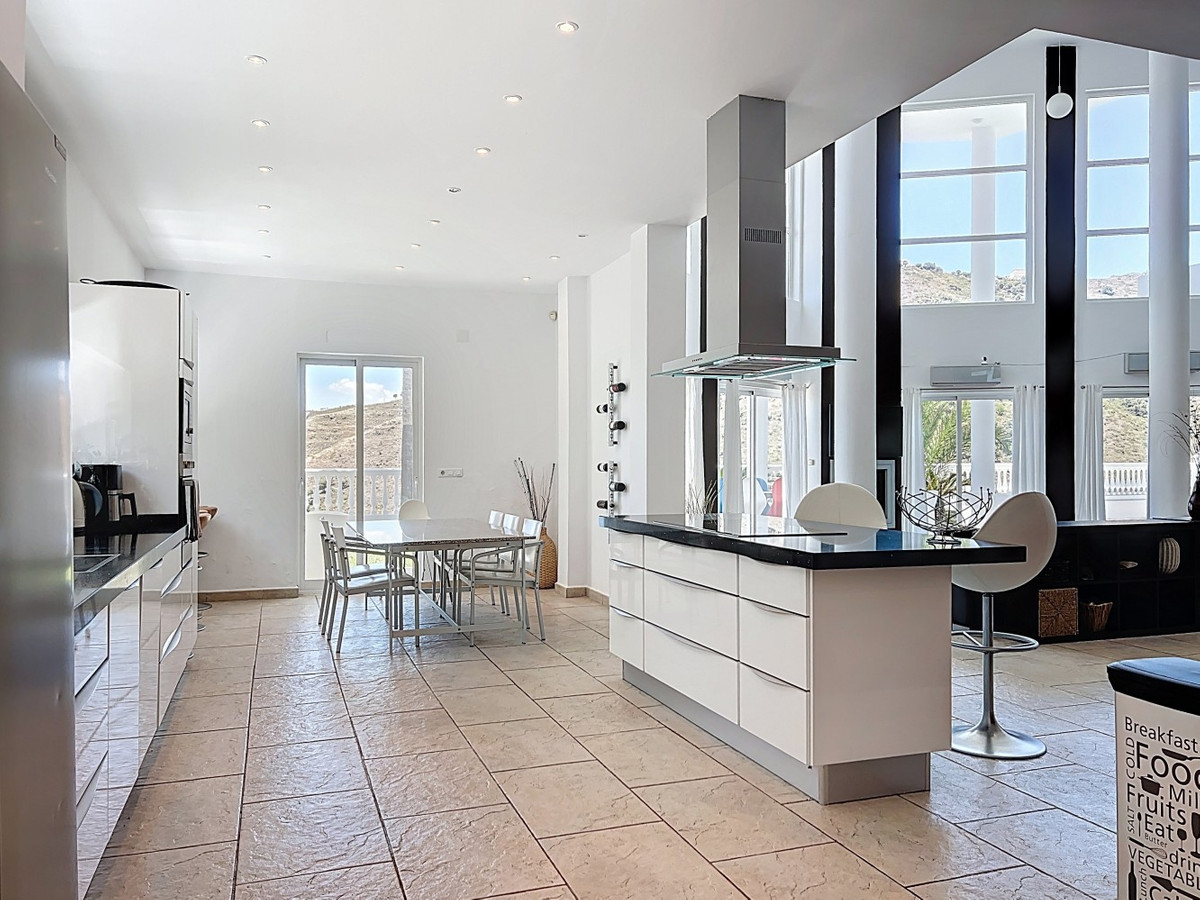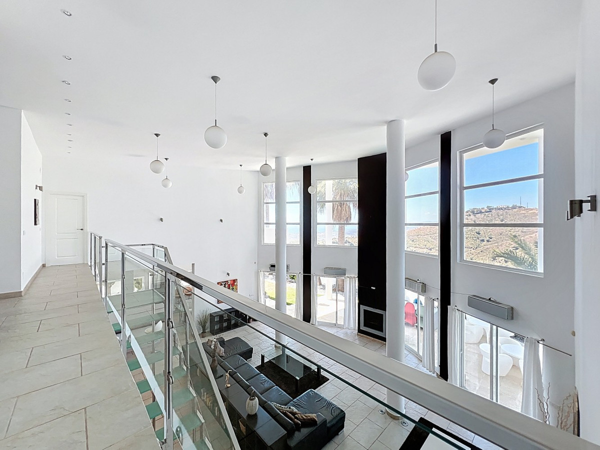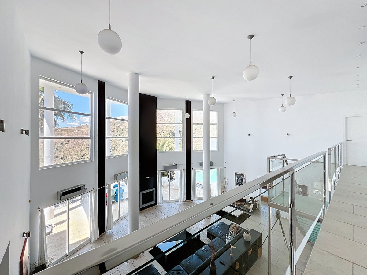 Cette impressionnante villa à Malaga, en Espagne, offre un mélange harmonieux d'espace, de luxe et de design moderne. S'étendant sur 395,8 m² répartis sur deux niveaux, la propriété comprend 7 chambres et 5 salles de bains, ce qui la rend idéale pour les familles nombreuses ou pour ceux qui aiment recevoir. Le rez-de-chaussée, d'une superficie de 212,7 m², abrite un magnifique espace de vie ouvert avec une impressionnante hauteur sous plafond. De grandes baies vitrées et des portes coulissantes en verre inondent l'espace de lumière naturelle et créent une transition fluide entre l'intérieur et l'extérieur. Le salon est dominé par une élégante cheminée et agrémenté d'un mobilier contemporain et confortable. La cuisine ultramoderne est un véritable rêve pour les gourmets, avec ses meubles blancs laqués, ses appareils haut de gamme et son îlot central spacieux avec coin repas. De larges fenêtres offrent une vue imprenable sur le paysage environnant pendant la préparation des repas. Un jardin zen intérieur, agrémenté de sable et de plantes décoratives, apporte une touche de sérénité au rez-de-chaussée. Les couloirs sont larges et lumineux, et leurs murs sont ornés d'œuvres d'art soigneusement sélectionnées. En accédant au deuxième étage par un escalier moderne aux balustrades en verre, vous découvrirez 183 m² d'espace de vie supplémentaire. La chambre principale, spacieuse (26,9 m²), offre une vue imprenable et une salle de bains privative. Les salles de bains de la propriété, élégantes et modernes, sont dotées de carrelage grand format, de douches à l'italienne et d'équipements contemporains. Certaines présentent des éléments de design originaux, comme des rideaux de douche imprimés de journaux, qui apportent une touche ludique à l'esthétique minimaliste. À l'extérieur, la propriété bénéficie d'une position dominante offrant une vue panoramique sur les montagnes et la campagne environnantes, ainsi que sur la Méditerranée scintillante. L'espace extérieur comprend une grande piscine, idéale pour se détendre ou recevoir tout en profitant du paysage à couper le souffle. La propriété est facilement accessible, assurant une liaison aisée avec les commodités et les attractions touristiques à proximité. De vastes terrasses offrent un espace généreux pour la détente et les loisirs en plein air, faisant de cette villa le lieu idéal pour profiter du climat espagnol avec style. Dans toute la villa, la palette de couleurs est principalement blanche, créant une atmosphère lumineuse et aérée parfaitement adaptée au climat espagnol. Des touches de couleur dans le mobilier et les œuvres d'art ajoutent un intérêt visuel sans perturber l'ambiance sereine. Cette villa représente le summum de l'art de vivre espagnol moderne, alliant intérieurs spacieux, finitions haut de gamme et vues à couper le souffle dans un ensemble impressionnant : une véritable maison de rêve. Nous sommes ravis de pouvoir vous présenter prochainement cette propriété d'exception, en personne ou par visite virtuelle. Car ce monde est unique, à l'image de notre Axarquía. En Andalousie. Sur la Costa del Sol. Ici, sous le soleil…