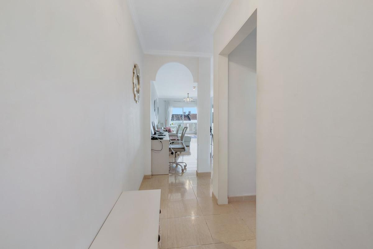 Terrazas de Guadalupe Phase II est une urbanisation exclusive et sécurisée à Manilva. Vous y profiterez d'une intimité absolue, d'une tranquillité absolue et de magnifiques vues sur la mer et la montagne. Cet appartement comprend 2 chambres, 2 salles de bains (dont une attenante), une cuisine séparée, un salon lumineux exposé plein sud et une vaste terrasse. Vous bénéficierez également d'un beau jardin commun bien entretenu, d'une piscine commune et d'une place de parking privée. La plage est à seulement 1,2 km, accessible à pied.