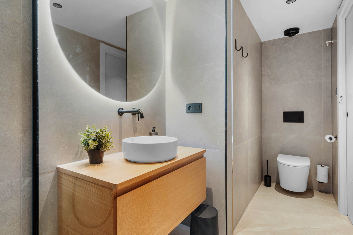 L'espace de vie ouvert, conçu avec soin pour allier confort et style, se prolonge harmonieusement sur une vaste terrasse exposée sud-ouest, idéale pour recevoir, dîner en plein air ou simplement se détendre au soleil. La lumière naturelle et les détails apaisants du design créent une ambiance chaleureuse et raffinée.