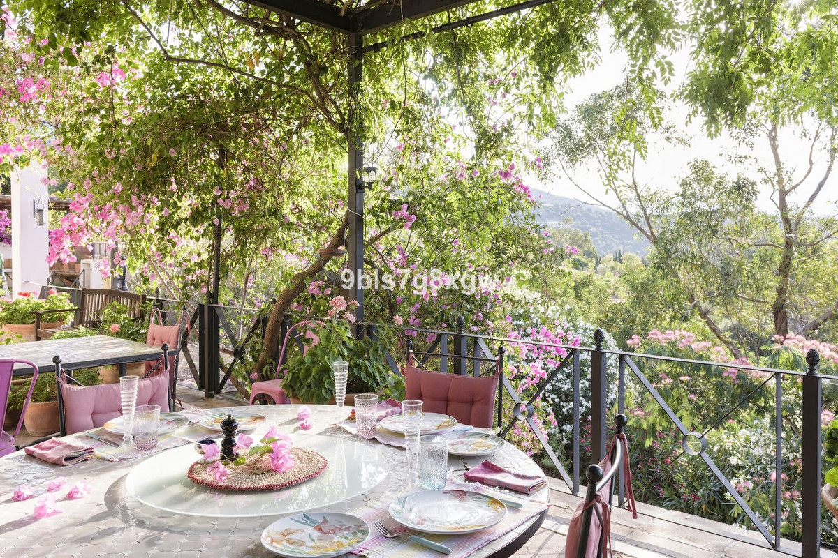 À l'extérieur, des jardins méditerranéens luxuriants et des arbres matures entourent la propriété, créant une atmosphère sereine de beauté naturelle. Au cœur du domaine, une piscine étincelante trône en maître, entourée de terrasses baignées de soleil et d'une pergola ombragée, l'endroit idéal pour de longs après-midi d'été. De tous côtés, des vues panoramiques s'offrent à la contemplation du paysage, invitant à la détente et à une profonde immersion dans la campagne andalouse.