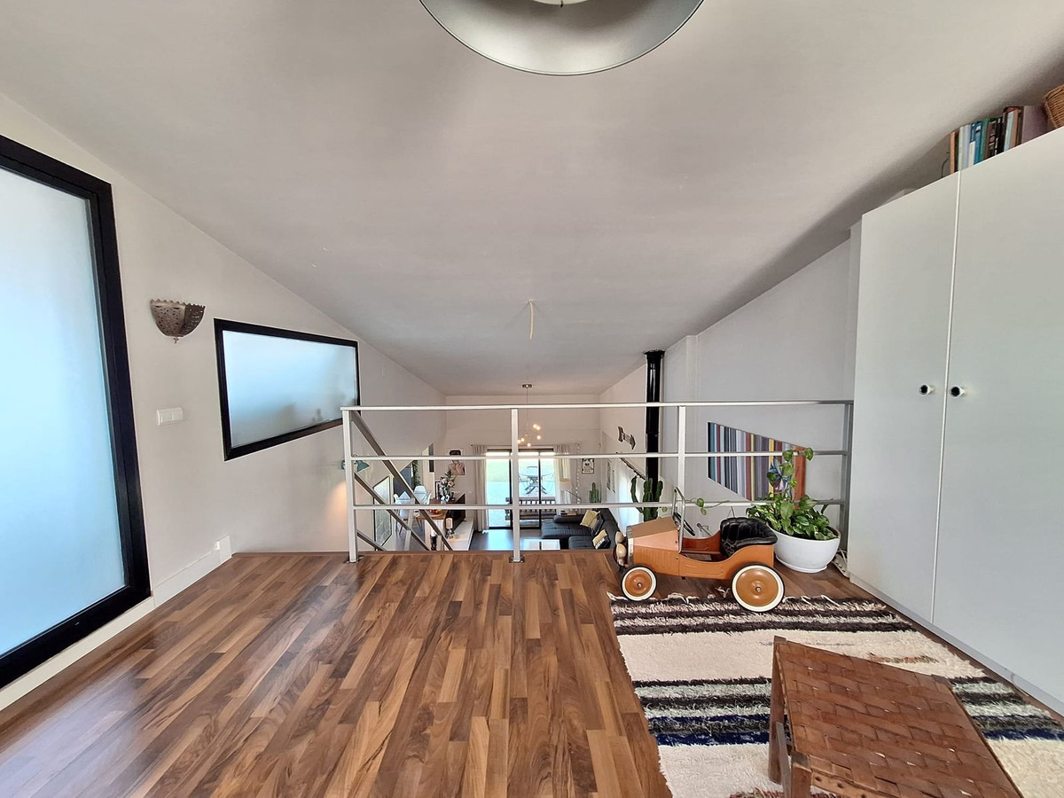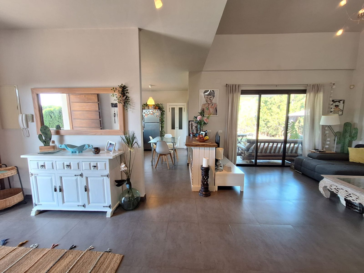 Rez-de-chaussée : Salon et salle à manger lumineux et décloisonnés avec cheminée et accès direct à la véranda et au jardin. Cuisine ouverte entièrement équipée. Cet étage comprend également une salle de bain avec douche et deux chambres spacieuses, dont une avec salle de bain attenante. De grandes fenêtres à double vitrage inondent l'espace de lumière naturelle et assurent une excellente ventilation transversale, préservant la fraîcheur de la maison en été.