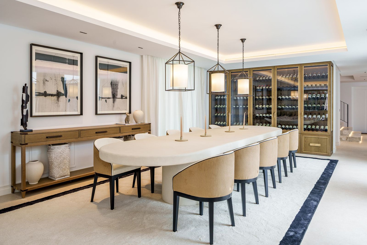 Ces aménagements comprennent un immense garage, une allée avec une plaque de retournement pour les voitures, un spa avec sauna et hammam, une salle de sport intérieure ultramoderne ainsi qu'une salle de cinéma privée – le tout avec accès direct au jardin.