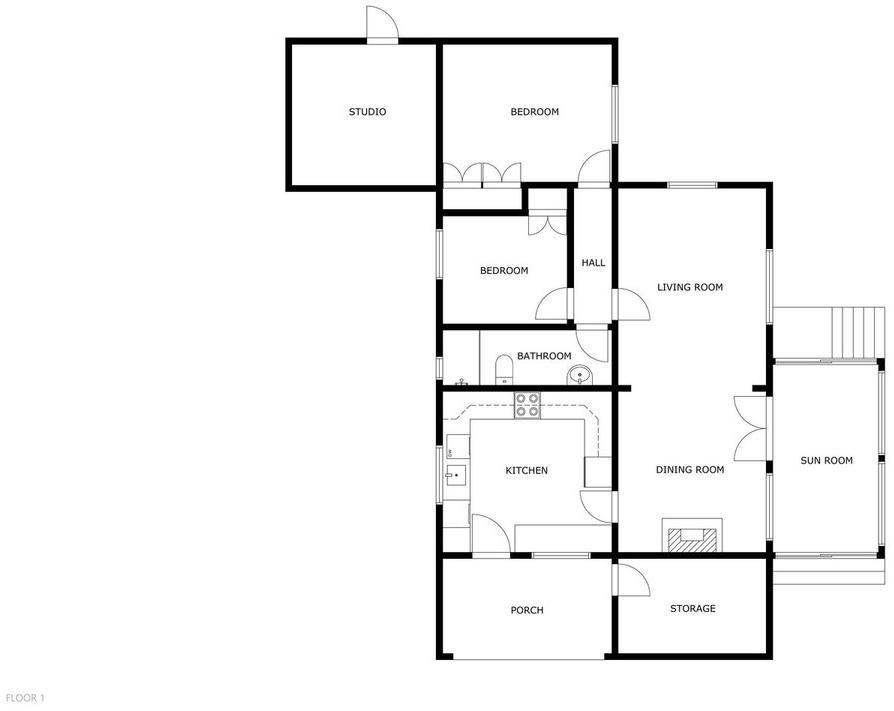 Cette maison familiale de plain-pied, construite par ses propriétaires, comprend un porche couvert, deux chambres, une salle de bains, un salon-salle à manger, une cuisine, un débarras et un porche supplémentaire.