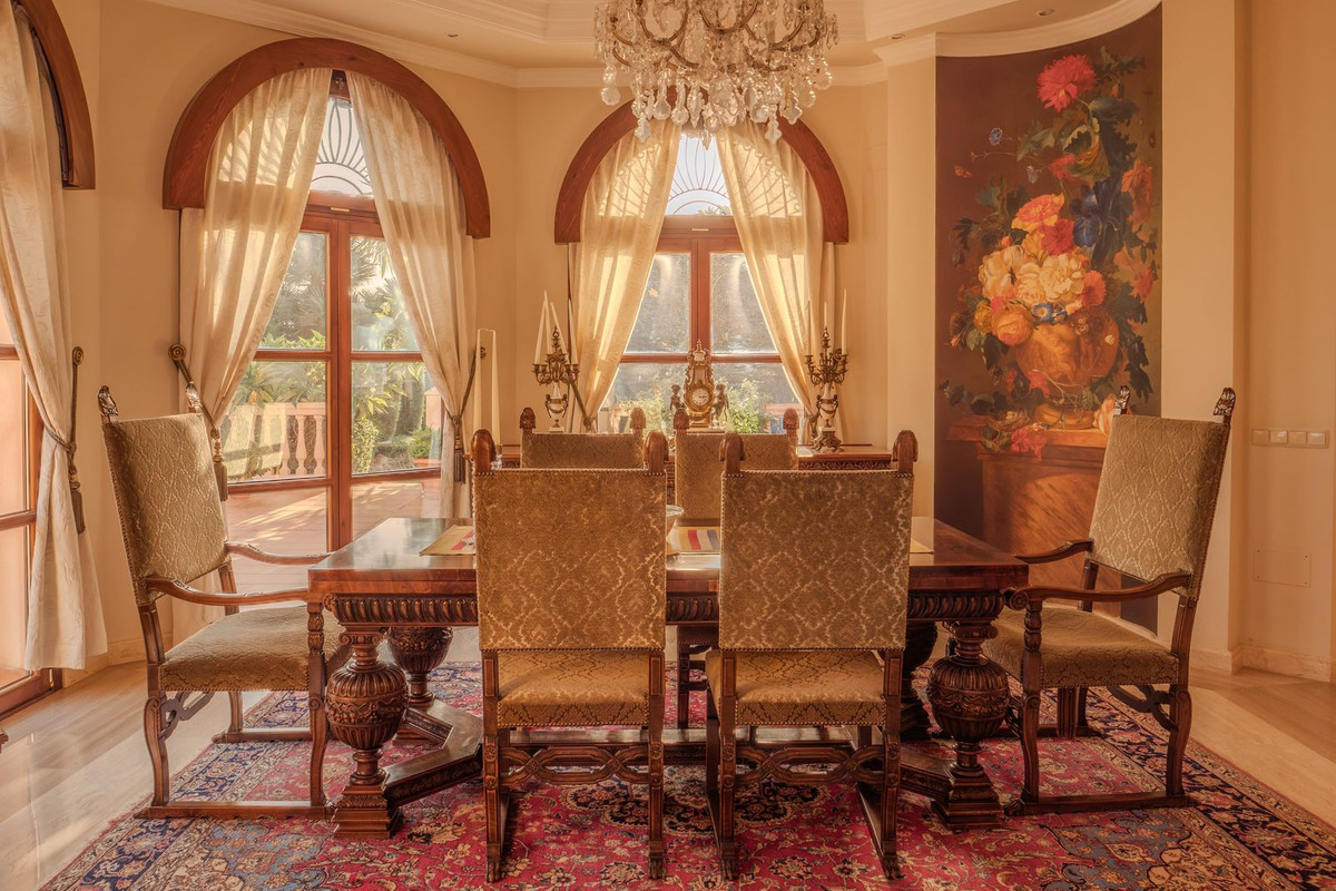 Élégamment située à Aloha, Nueva Andalucía, l'une des adresses les plus prisées de Marbella, cette résidence emblématique orientée ouest se dresse sur un terrain de 3 400 m² et séduit par son allure grandiose et raffinée. Ses 1 727 m² d'intérieurs révèlent de hauts plafonds à double hauteur, des boiseries ouvragées et du marbre travaillé à la main, créant des espaces d'une beauté intemporelle et d'un caractère sophistiqué.