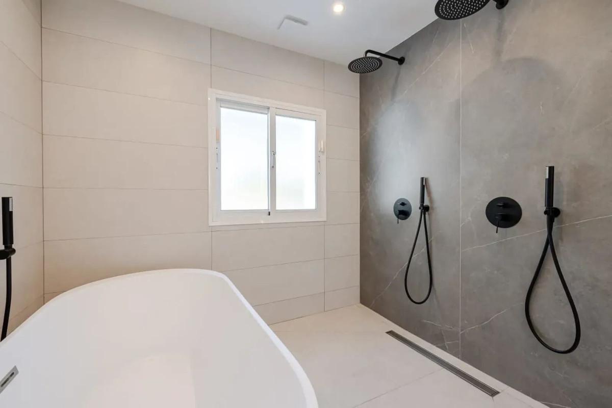 La chambre principale est spacieuse et dispose d'un dressing séparé avec de nombreux rangements. La salle de bains attenante est entièrement modernisée et comprend une très grande douche double, une baignoire et une double vasque. La deuxième chambre bénéficie également d'une salle de bains privative moderne avec baignoire. Les deux autres chambres partagent une grande salle de bains avec baignoire-douche et douche séparée.