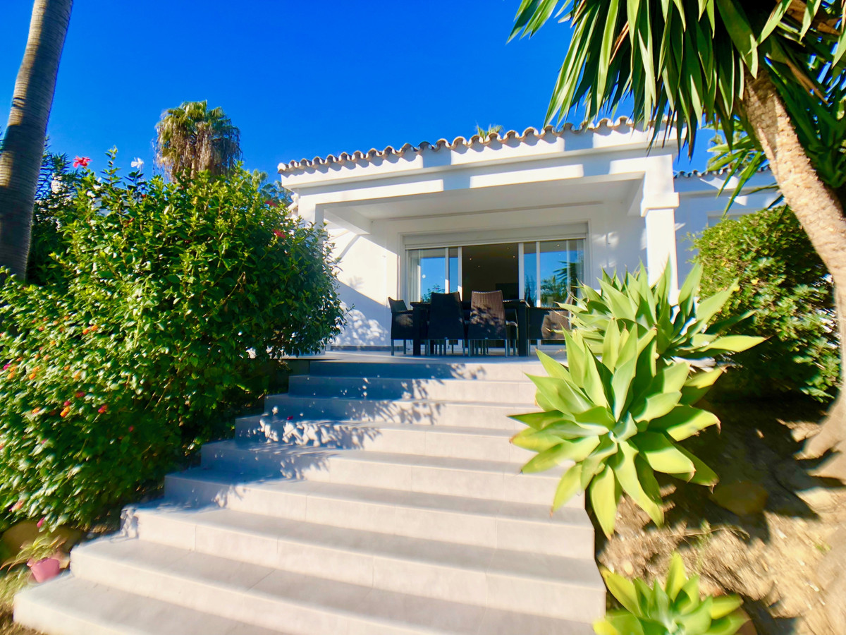 Récemment rénovée en totalité, cette superbe villa de plain-pied, orientée plein sud, est particulièrement lumineuse et chaleureuse. Située à Atalaya, elle se trouve à 5-10 minutes en voiture de San Pedro de Alcántara et de Puerto Banús.