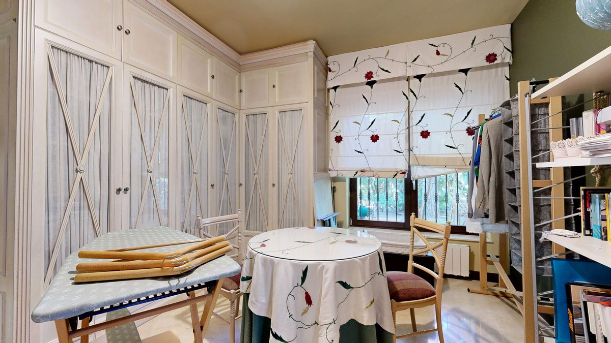 Le rez-de-chaussée comprend un garage double, un local technique, un espace de rangement, des chambres pour les invités et le personnel, un des salons et une véranda. Au premier étage, vous trouverez le hall d'entrée, des toilettes invités, une cuisine-salle à manger, le salon principal donnant sur une terrasse couverte, une bibliothèque et une aile réservée aux chambres.