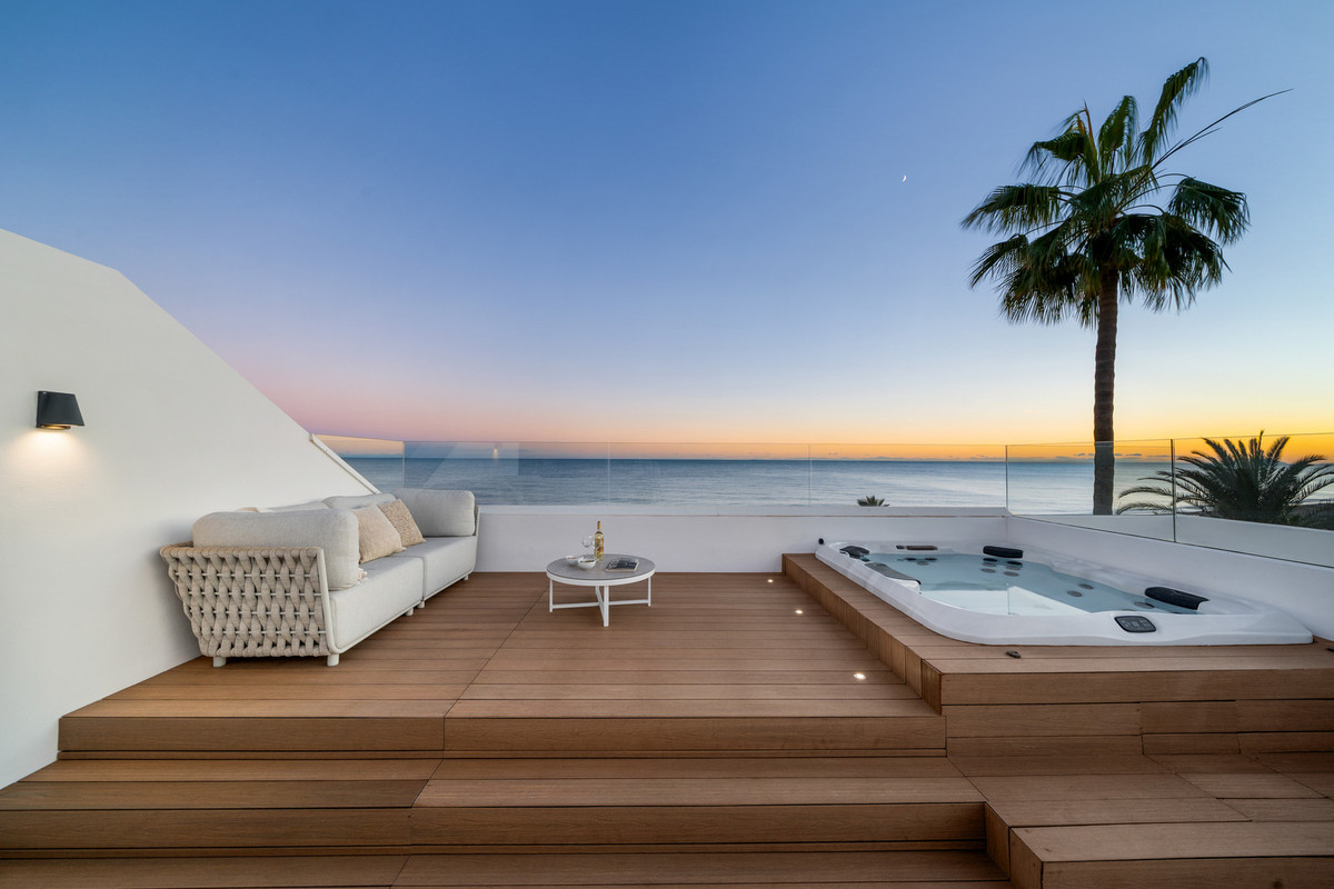 A fantastic feature of this property is the expansive roof terrace, offering the ultimate entertainment space with multiple lounge areas, a jacuzzi and the breathtaking panoramic views of the Mediterranean Sea. On the basement level, this estate offers a luxurious spa with indoor heated swimming pool and sauna. Located on the New Golden Mile in Playa del Saladillo with lovely wide beaches and beautiful sand dunes. Within short walking distance you will find the great Pepe's beach Chiringuito restaurant,