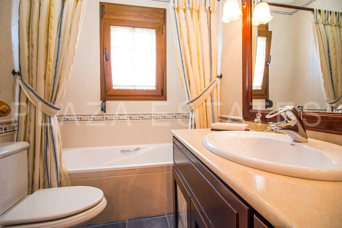 Magnifique maison de 4 chambres et 3 salles de bains, située dans le quartier résidentiel calme de La Noria, avec piscine commune et court de tennis, à 5 minutes en voiture du centre de Nerja, et offrant une vue sur la mer. Construite avec des matériaux de haute qualité, la maison est répartie sur trois niveaux. Au rez-de-chaussée, vous trouverez le salon, un petit séjour, une cuisine séparée et une grande terrasse couverte avec cuisine d'été. À l'étage, 2 chambres, 2 salles de bains et un balcon avec vue sur la mer. Au niveau inférieur se trouvent un grand garage et un appartement indépendant avec une chambre, une salle de bains et un séjour avec cheminée. La piscine privée couverte est accessible depuis la grande terrasse attenante au séjour.