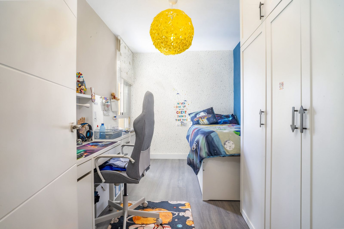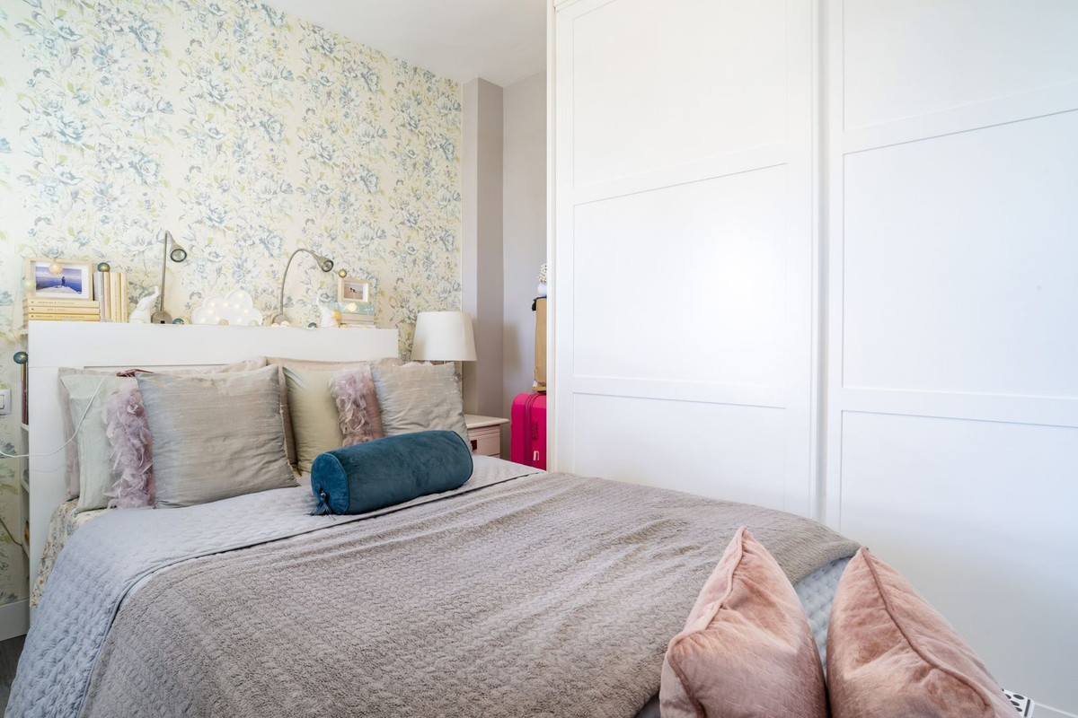 This beautifully designed apartment boasts 2 spacious bedrooms, a modern bathroom, and a bright salon that invites natural light. The well-equipped kitchen and hallway lead to a double bed setup, ensuring a cozy living experience. Additional features include air conditioning, a video intercom, and convenient access via an elevator, making it suitable for everyone, including those with disabilities.