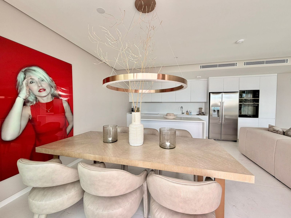 La chambre principale comprend des placards intégrés et une salle de bains privative, tandis que la seconde chambre est idéale pour les invités ou la famille. L'intérieur associe des finitions haut de gamme Porcelanosa à du mobilier et des éléments de design signés Minotti, créant ainsi un espace de vie raffiné, élégant et intemporel.