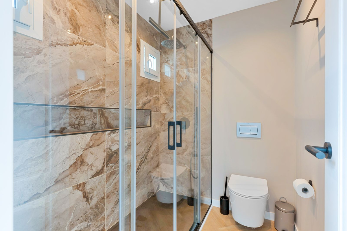 Le dernier étage abrite une chambre spacieuse de 20 m² avec salle de bains privative, conçue pour un confort et une intimité absolus. De grandes baies vitrées offrent une vue panoramique imprenable, inondant l'espace de lumière naturelle et créant une transition harmonieuse avec l'extérieur. La suite est complétée par deux terrasses. L'une surplombe la piscine commune et offre une vue imprenable sur la mer, tandis que l'autre offre une vue magnifique sur les montagnes de La Concha, idéale pour admirer le lever et le coucher du soleil en toute tranquillité.