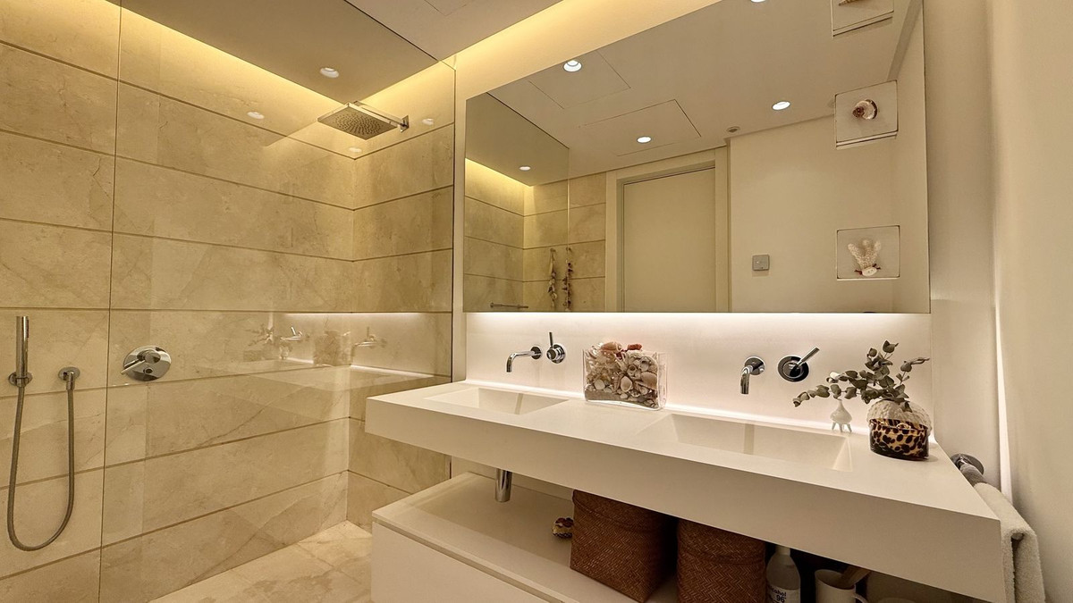 Cet appartement comprend trois chambres spacieuses et trois salles de bains modernes, toutes dotées de finitions haut de gamme. L'espace de vie ouvert réunit salon, salle à manger et cuisine contemporaine entièrement équipée, créant un environnement accueillant et fonctionnel baigné de lumière naturelle. Depuis cet espace, vous accédez directement à une terrasse privative avec solarium, idéale pour se détendre, recevoir ou admirer la vue imprenable.