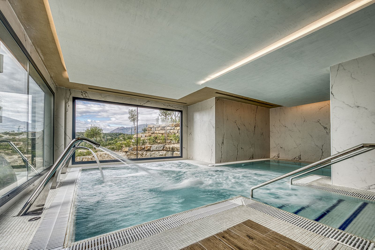 Le complexe propose des installations communes exceptionnelles, dont un magnifique spa avec vue sur la nature environnante, une piscine intérieure chauffée, un sauna, un hammam et des espaces de détente. De plus, les résidents peuvent profiter d'une grande piscine extérieure et de jardins paysagers soignés qui contribuent à un cadre de vie exclusif et paisible.