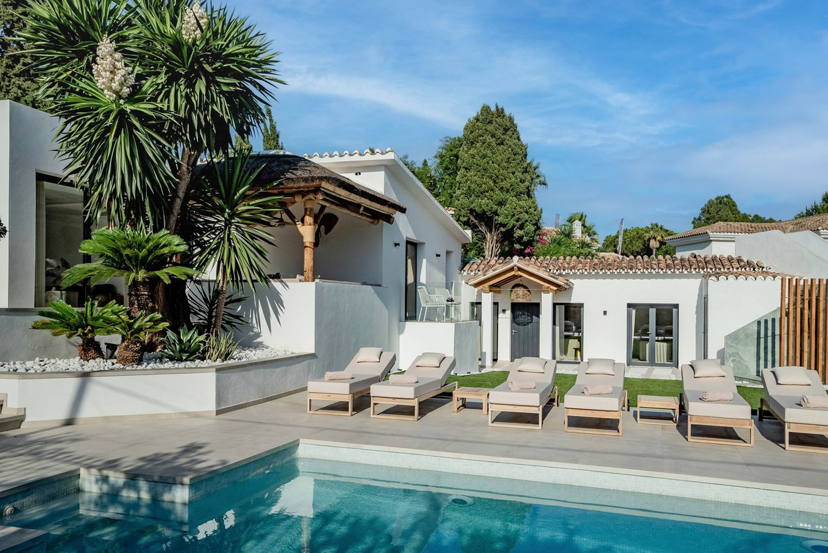 Nichée dans l'enclave exclusive de Nagueles, le long du célèbre Golden Mile de Marbella, cette villa de six chambres entièrement rénovée offre la quintessence de la vie de luxe. Bénéficiant d'un emplacement privilégié à environ 1,8 km de la plage et à seulement 800 m de l'école internationale locale et du parc naturel, cette résidence allie harmonieusement commodité et tranquillité.
