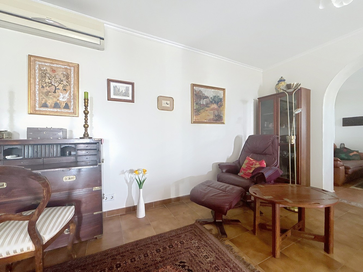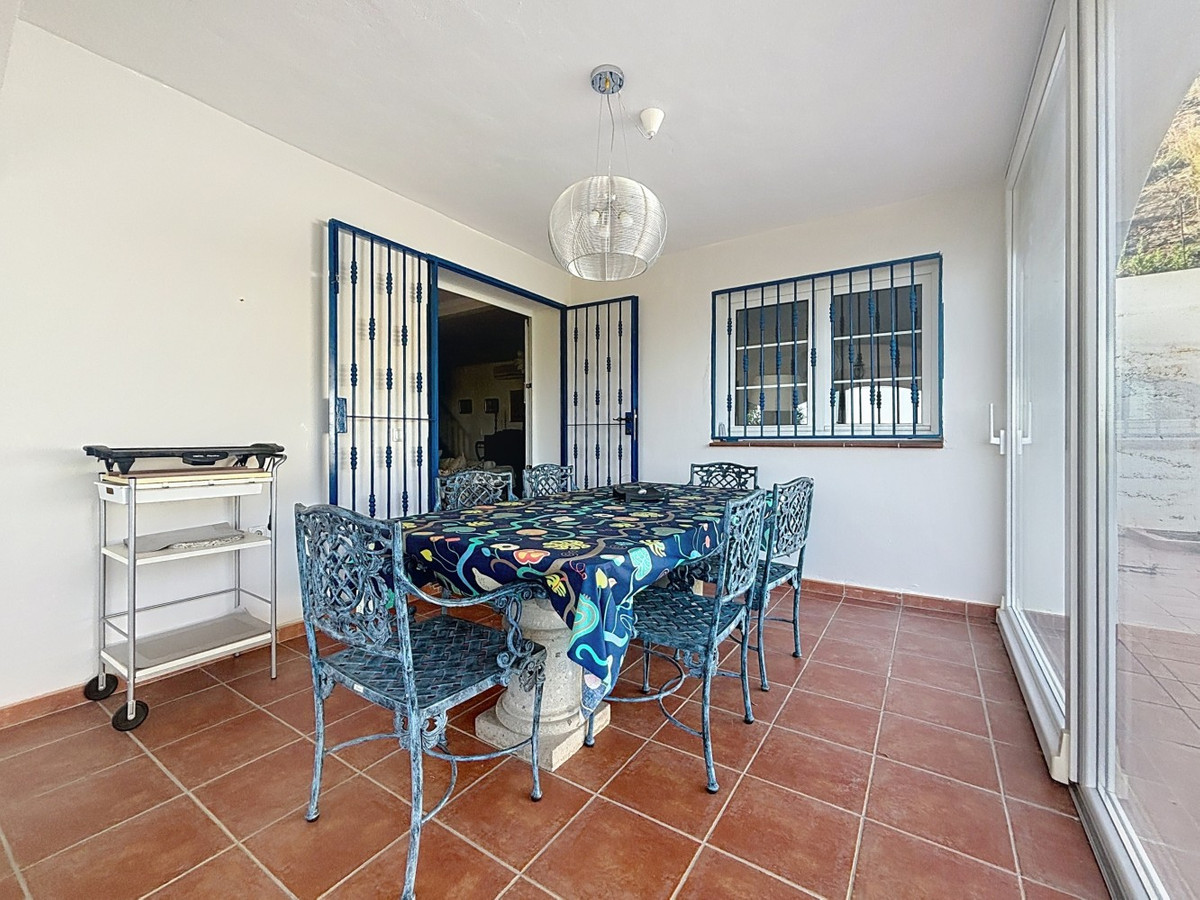 Cette charmante maison andalouse, nichée sur les hauteurs d'Arenas, l'un des nombreux villages de montagne enchanteurs de la région, offre une vue panoramique imprenable sur la mer Méditerranée et la campagne environnante. La maison nécessite une rénovation et un peu d'attention pour révéler tout son potentiel. Pénétrez à l'intérieur et découvrez un espace de vie lumineux et spacieux au rez-de-chaussée, communiquant harmonieusement avec une cuisine entièrement équipée et une terrasse ensoleillée. Le véritable atout est le jardin d'hiver vitré, doté d'un second espace repas, idéal pour savourer des repas en admirant la vue imprenable sur la mer et la piscine en contrebas. Ce niveau comprend également des toilettes invités et une salle de bains avec baignoire pour plus de confort. Attenante à l'espace de vie ouvert se trouve une pièce supplémentaire polyvalente qui pourrait facilement être transformée en quatrième chambre, chambre d'amis ou salon cosy. À l'étage, vous trouverez trois chambres de belles dimensions, dont une actuellement aménagée en bureau, idéale pour le télétravail avec une vue inspirante. Une spacieuse salle de bains familiale avec baignoire complète l'étage. La maison est équipée de la climatisation et de placards intégrés dans toutes les pièces, garantissant confort et praticité. À l'extérieur, une piscine scintillante vous invite à la fraîcheur lors des chaudes journées d'été, tout en profitant d'une vue imprenable sur la mer. Le généreux terrain de 2 790 m² comprend un abri voiture et est orné de bougainvilliers éclatants, apportant une touche de couleur à ce jardin serein. Nous sommes ravis de pouvoir vous présenter prochainement cette propriété de rêve, en personne ou par visite virtuelle. Car ce monde est unique, à l'image de notre Axarquía. En Andalousie. Sur la Costa del Sol. Ici, sous le soleil…