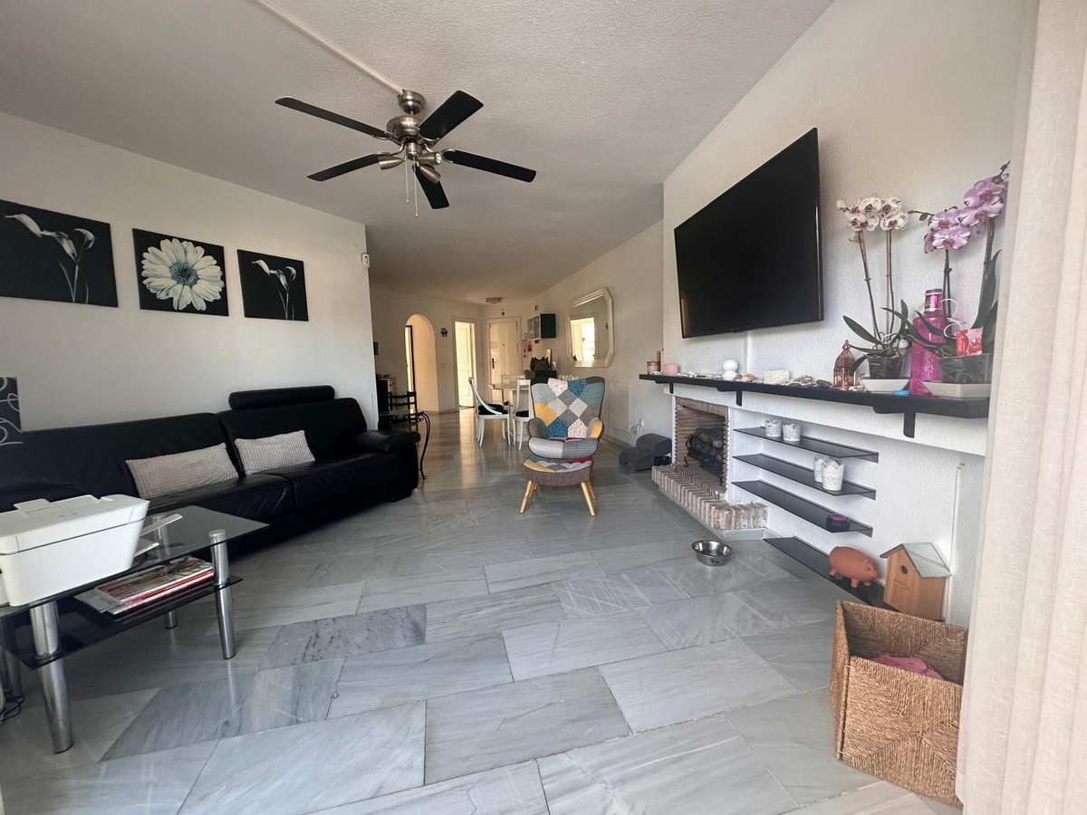 Situé au deuxième étage d'un immeuble de style andalou, ce bien comprend deux chambres avec placards intégrés et deux salles de bains, idéal pour les familles ou les couples en quête d'espace et de confort.