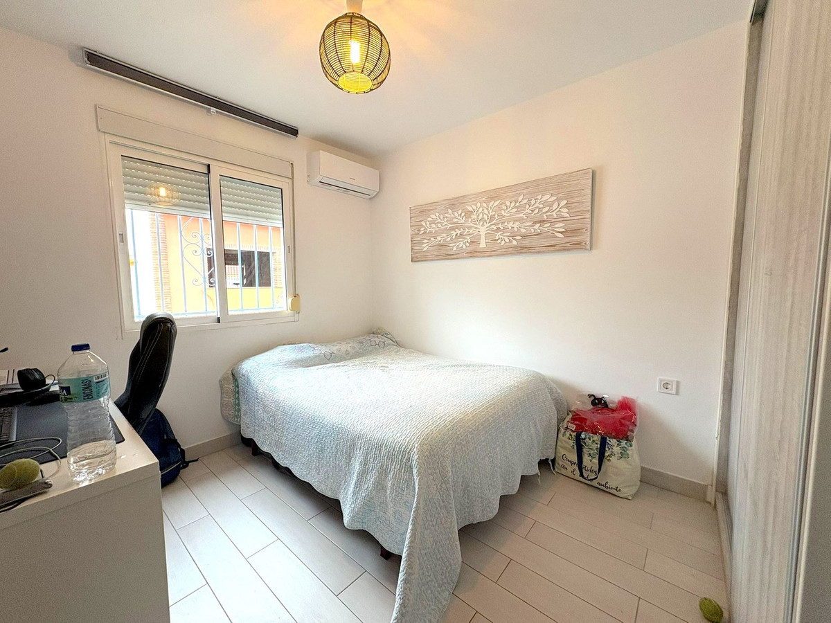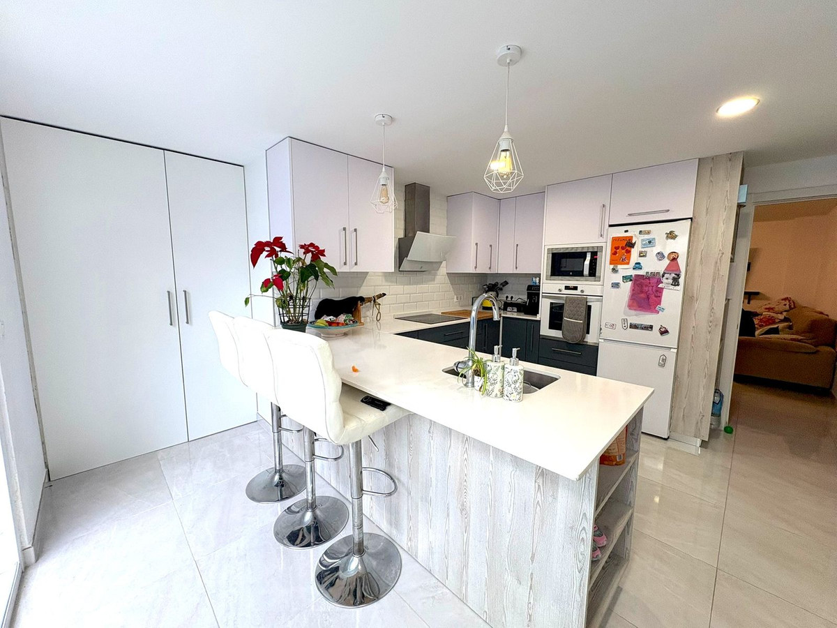 Maison de ville récemment rénovée à Arroyo de la Miel, offrant confort moderne et espaces de vie généreux. Elle comprend trois chambres, dont une suite parentale avec dressing et une autre avec placards intégrés. Deux salles de bains entièrement équipées, l'une avec baignoire hydromassage et l'autre avec douche à l'italienne. L'élégante cuisine a été rénovée avec un îlot central et un plan de travail en Silestone. Un cellier double hauteur offre un espace de rangement supplémentaire appréciable. La maison est équipée d'une climatisation réversible et d'une cheminée dans le séjour. Profitez de terrasses privatives à l'avant et à l'arrière, de volets roulants de sécurité, d'une porte d'entrée renforcée et de l'absence de charges de copropriété.