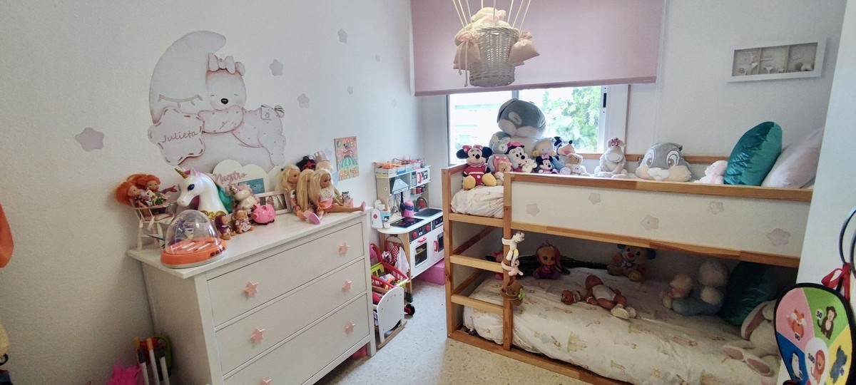 Ce bien se situe au deuxième étage d'un immeuble avec ascenseur et dispose d'une surface habitable de 107 m², répartie entre une chambre principale, deux chambres secondaires, une salle de bains complète (avec possibilité d'ajouter une deuxième salle de bains), une cuisine séparée entièrement aménagée et équipée avec buanderie, et un spacieux séjour-salle à manger d'environ 25 m² avec accès direct à une agréable terrasse de 8 m², orientée à l'est et offrant une vue dégagée sur les parties communes.