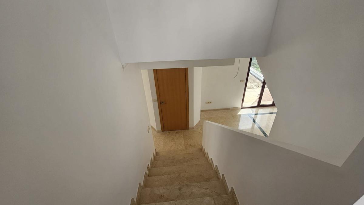 L'entrée principale se situe à l'étage, où vous êtes accueillis par un salon-salle à manger lumineux, une cuisine avec buanderie et une agréable terrasse couverte, idéale pour en profiter toute l'année grâce au climat privilégié de la région.