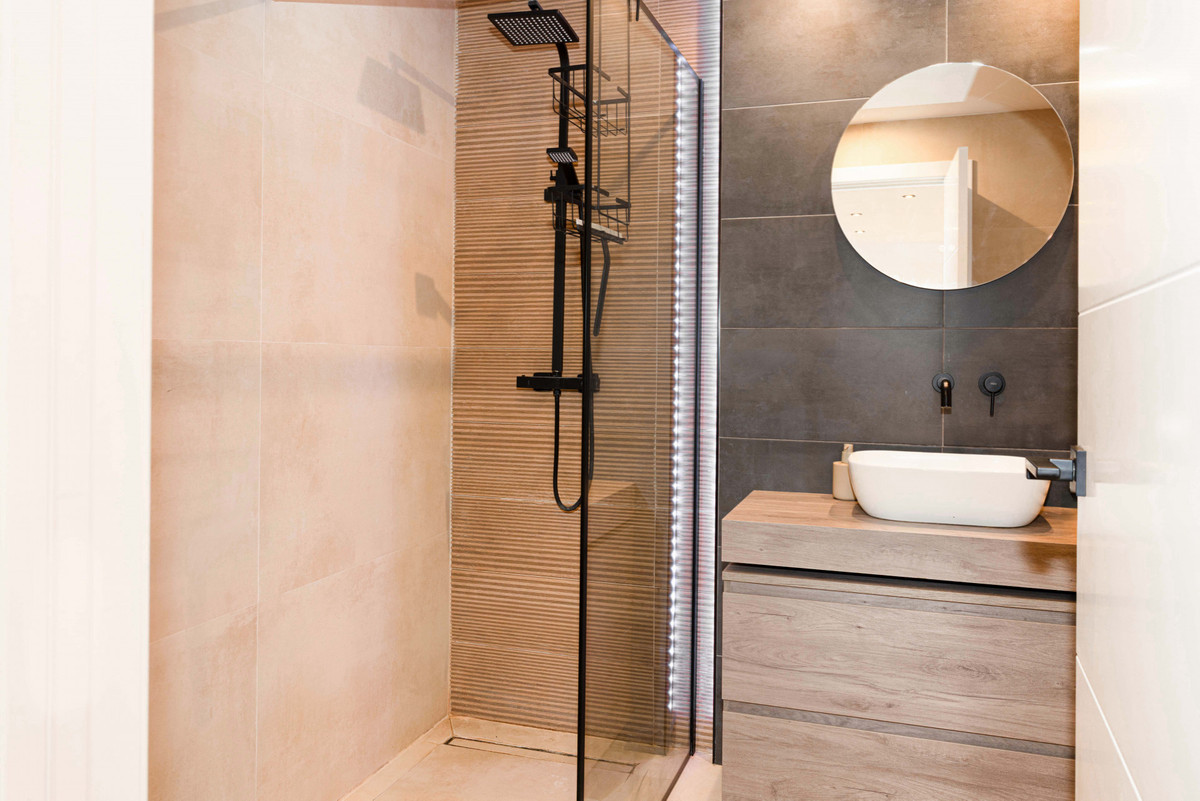 Les deux chambres sont spacieuses et les deux salles de bains contemporaines offrent des prestations haut de gamme. L'espace de vie ouvert, comprenant salon et salle à manger, se prolonge harmonieusement vers une cuisine moderne, idéale au quotidien comme pour recevoir.