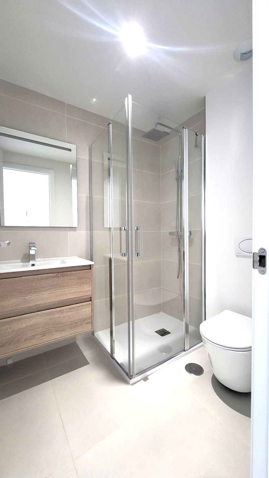 Chambre principale avec salle de bains attenante et accès direct à la terrasse. Climatisation réversible, interphone vidéo, domotique, placards intégrés dans toutes les chambres, chauffage au sol dans les salles de bains, pré-installation pour système d'alarme. Comprend deux places de parking et un débarras.