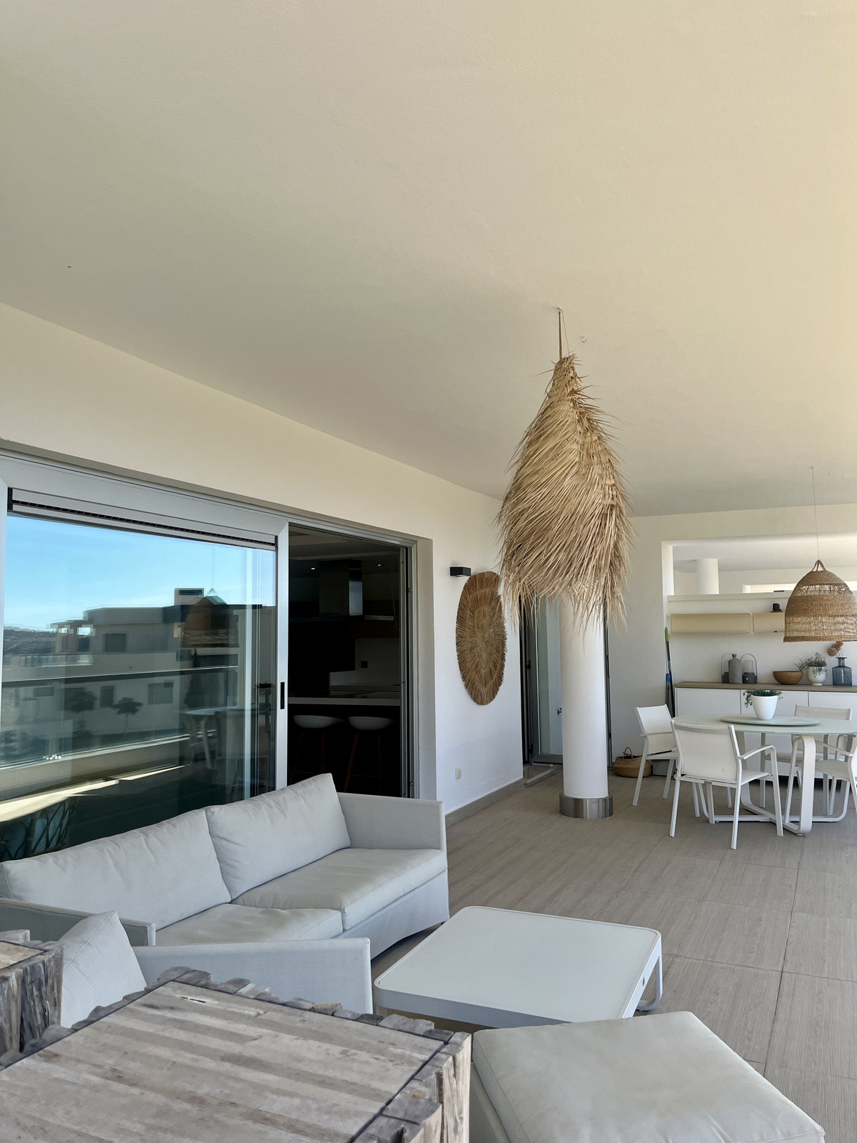Cet appartement, d'une surface habitable de 101 m² et d'une terrasse de 103 m², bénéficie d'une distribution ouverte et lumineuse. La cuisine entièrement équipée s'intègre harmonieusement au séjour, créant un espace de vie élégant, idéal pour se détendre et recevoir. Les finitions haut de gamme comprennent des sols en marbre, des placards intégrés et la climatisation. Ce bien est proposé à la vente en excellent état. Il comprend également un accès internet haut débit (Wi-Fi), une Smart TV, un ascenseur et une terrasse privative donnant sur les jardins luxuriants et la piscine commune chauffée, pour en profiter toute l'année.