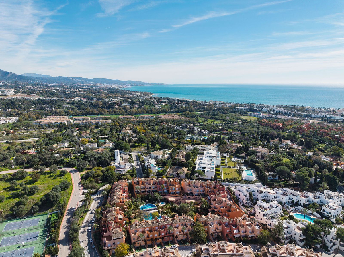 Cette maison de ville de trois chambres, superbement présentée, s'étend sur trois niveaux spacieux et allie confort, espace et emplacement idéal au cœur de Nueva Andalucía. Un large choix de restaurants, cafés, bars et boutiques est accessible à pied, tandis que Puerto Banús, ses plages de sable fin et ses parcours de golf renommés sont à quelques minutes seulement. Le rez-de-chaussée comprend une cuisine de belles dimensions avec une buanderie séparée et un espace de vie en demi-niveau avec cheminée. Des portes s'ouvrent sur une terrasse privée donnant directement sur les jardins communs et la piscine. Chacune des trois chambres spacieuses dispose d'une terrasse privative. La suite du dernier étage se distingue par sa grande terrasse privée et une terrasse supplémentaire avec barbecue intégré et vue dégagée sur le jardin – idéale pour les repas en plein air et les réceptions. Parmi les autres atouts, citons une allée privée, un garage spacieux, trois salles de bains attenantes et des toilettes invités. Située au sein du prestigieux complexe résidentiel El Palmeral, composé de seulement 46 maisons de ville, cette propriété offre à ses résidents deux piscines, un jacuzzi extérieur chauffé, un sauna, une salle de sport et de magnifiques jardins entretenus, le tout dans un cadre sécurisé et paisible. Une superbe opportunité d'acquérir une grande maison dans l'un des quartiers les plus prisés de Marbella.