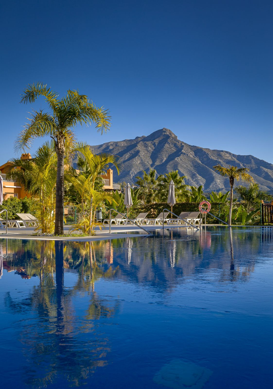 Uitzicht: Bergen, Tuin, Zwembad