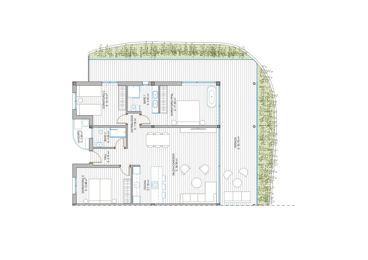 Avec une surface habitable totale de 117,11 m² et une vaste terrasse d'angle, la résidence est conçue pour une transition harmonieuse entre intérieur et extérieur. Son orientation sud-ouest garantit une luminosité naturelle tout au long de la journée et de magnifiques couchers de soleil sur la Méditerranée.