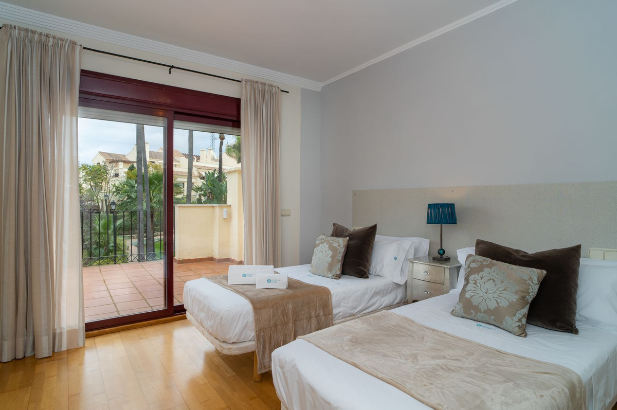 Ce terrain privatif de 50 m² vous permet de profiter pleinement du plein air grâce à vos terrasses et votre solarium privés. La résidence sécurisée comprend une piscine commune et de magnifiques jardins paysagers, parfaits pour se détendre au soleil. Son emplacement est exceptionnel : à seulement 15 minutes à pied de la plage et à proximité des supermarchés, commerces, restaurants et bars. Une promenade piétonne récemment aménagée relie directement Puerto Banús, offrant un accès facile à son port de plaisance animé.