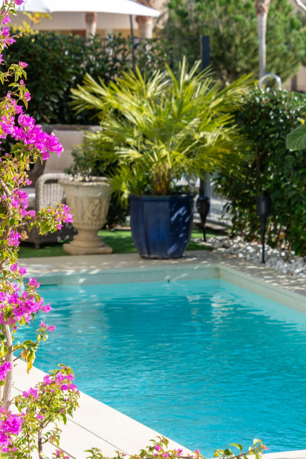 Espace détente raffiné au bord de la piscine