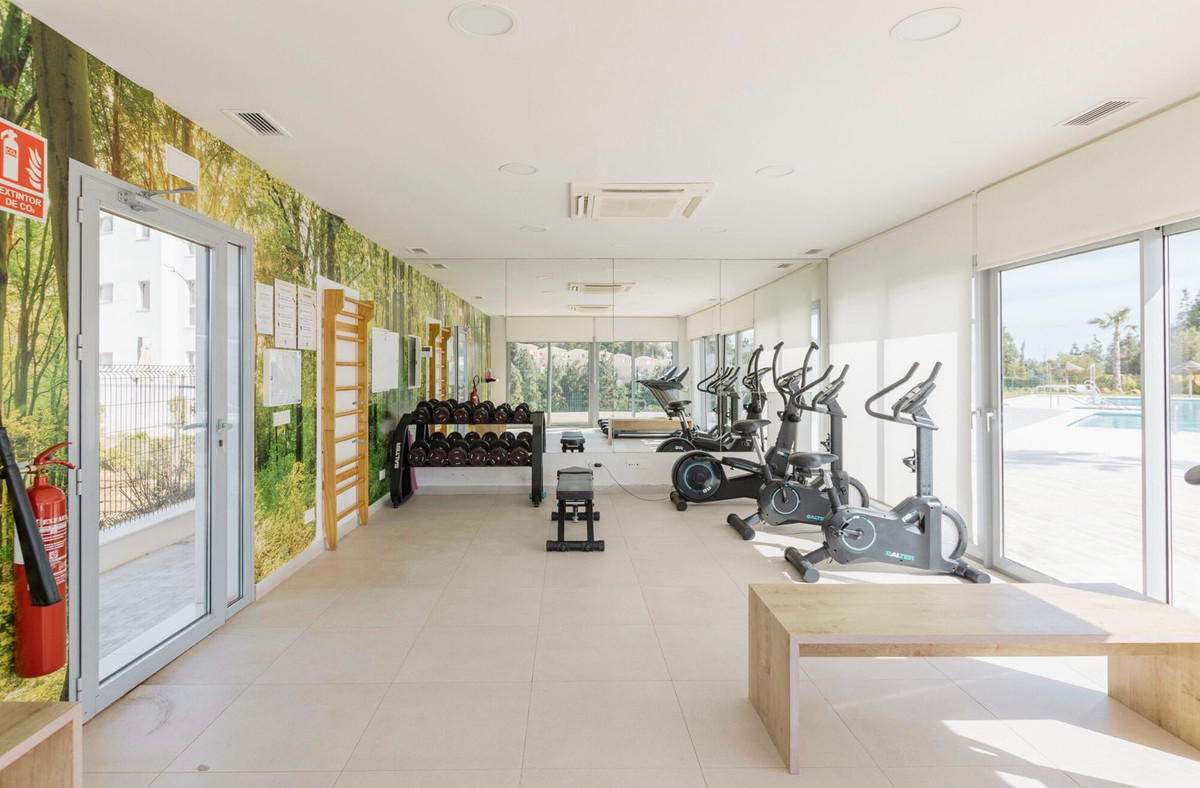 Salle de sport entièrement équipée + parcours de course/fitness extérieur.