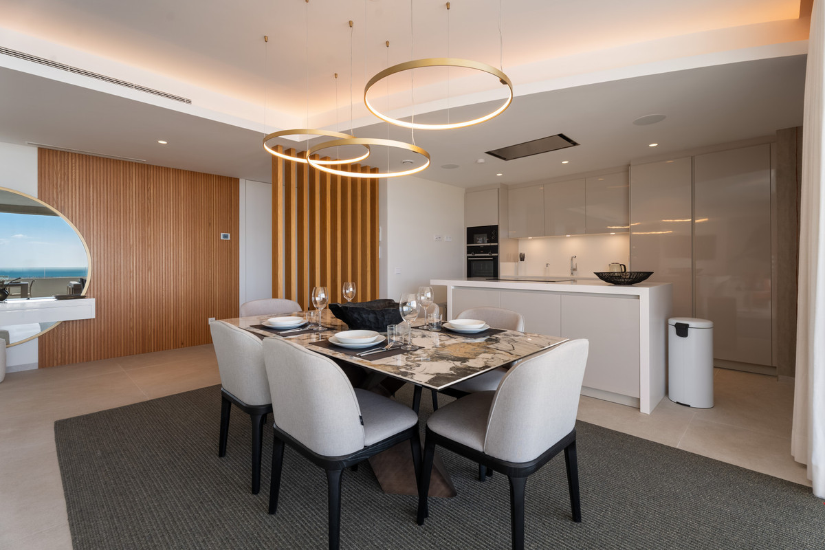 Cet appartement situé au premier étage offre une vue panoramique imprenable sur la mer Méditerranée, Gibraltar et les montagnes de l'Atlas, visible depuis sa vaste terrasse privative et les pièces de vie principales. Niché dans un petit immeuble de seulement cinq appartements, il s'agit d'un logement de standing intermédiaire, avec un seul voisin, garantissant une intimité et une tranquillité optimales.