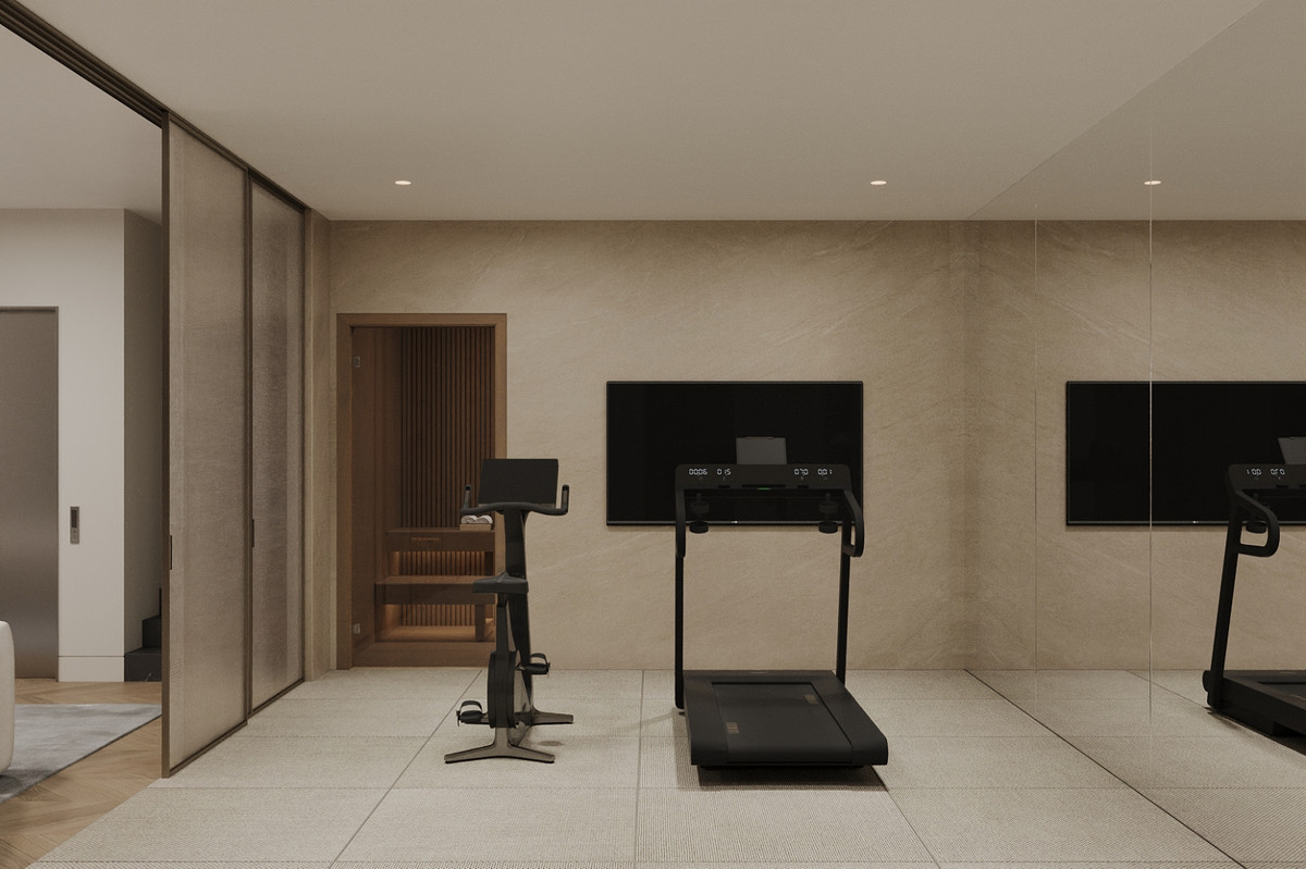 - Des baies vitrées du sol au plafond, qui mettent en valeur la lumière naturelle et l'ouverture spatiale.