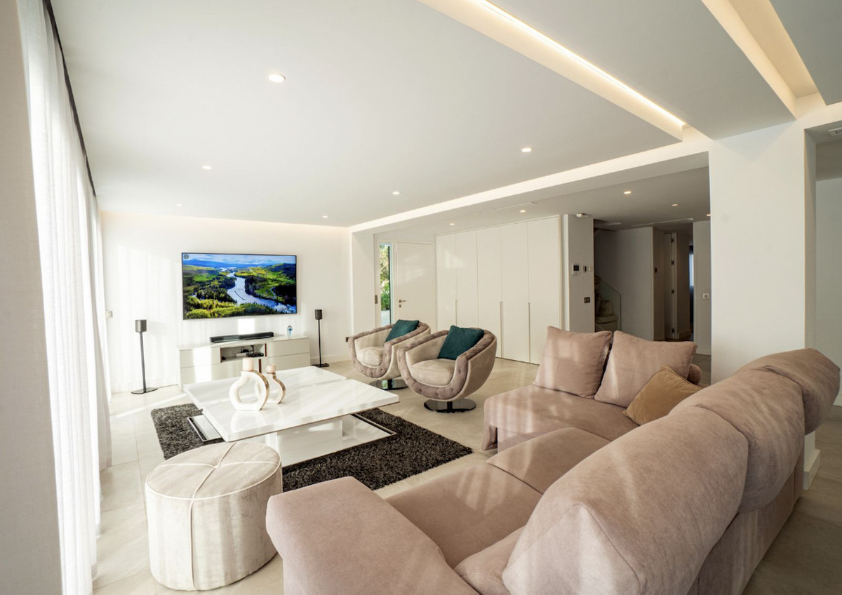 Villa exclusive située au cœur de Nueva Andalucia, rénovée avec des prestations haut de gamme. Emplacement privilégié, à proximité de Puerto Banús et des plus prestigieux golfs, écoles internationales, installations sportives et services. La maison comprend 4 chambres et 1 bureau, ainsi que 5 salles de bains. L'étage supérieur offre une vue imprenable sur le mont La Concha et le quartier résidentiel, et dispose d'une vaste terrasse solarium. De grands espaces ouverts et minimalistes, une sécurité renforcée, un magnifique lac accessible directement depuis le jardin et une spacieuse piscine privée vous invitent à profiter du calme environnant.