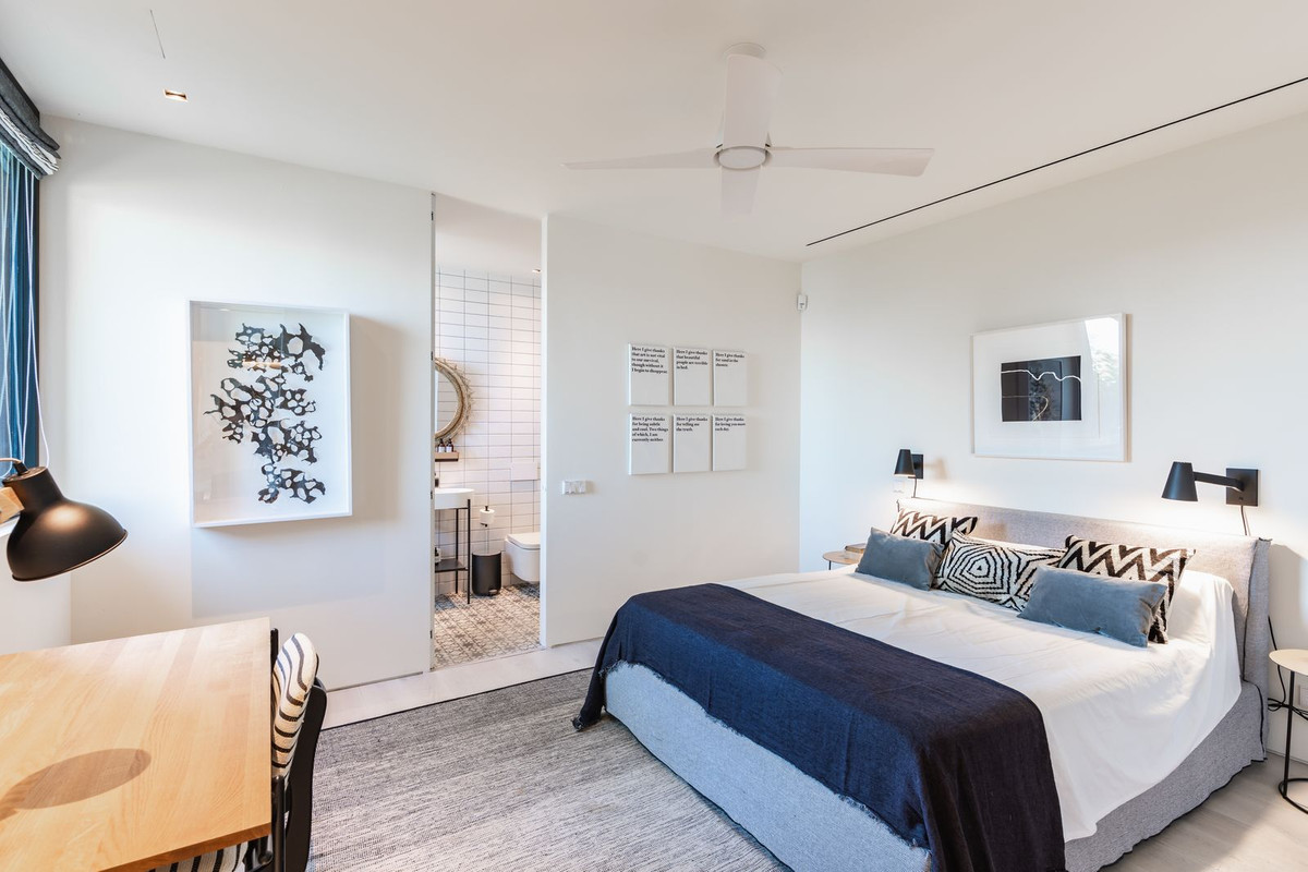 Le niveau inférieur offre une polyvalence exceptionnelle, avec trois chambres supplémentaires (dont une actuellement aménagée en bureau), un vaste espace TV et salon, une salle de sport entièrement équipée et un sauna. Ce niveau s'ouvre sur une terrasse couverte, actuellement utilisée comme salle de jeux, et facilement adaptable à différents besoins. De là, un chemin mène directement à la piscine, elle aussi idéalement située pour profiter pleinement de la magnifique vue sur la côte.