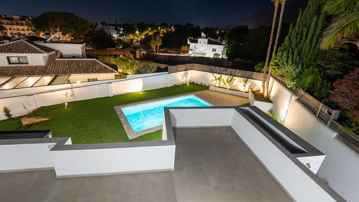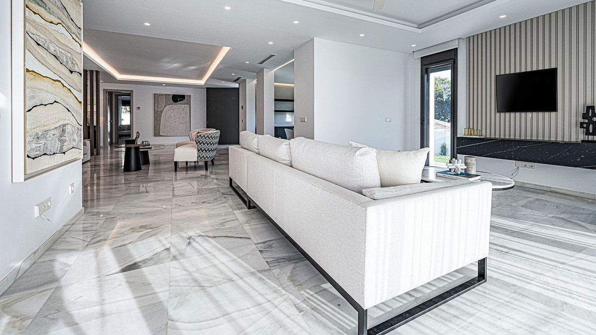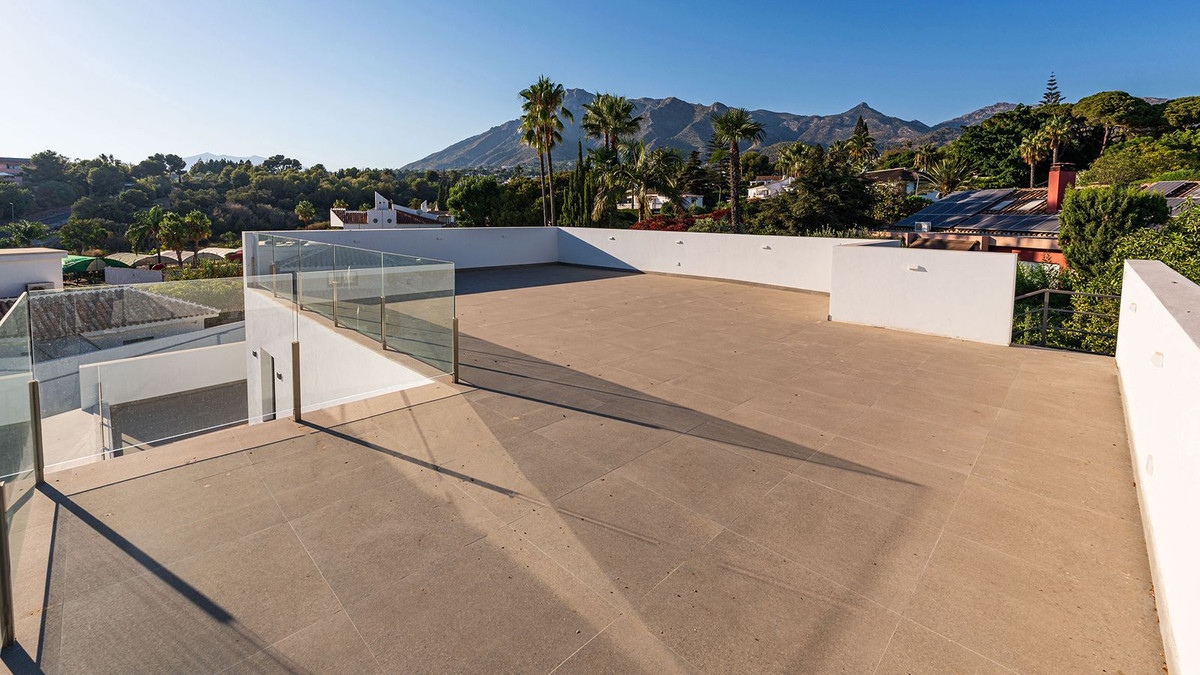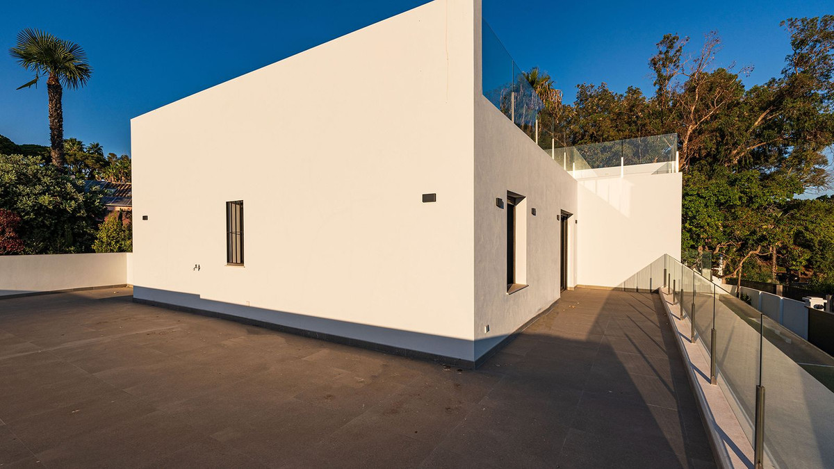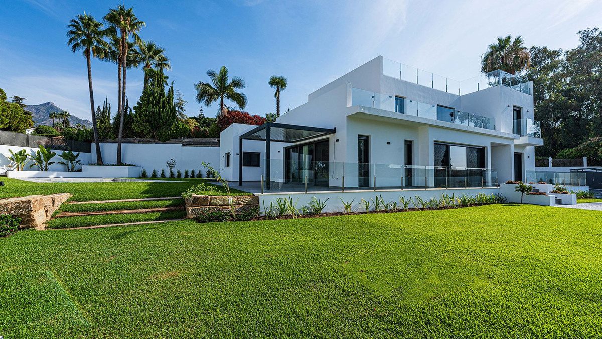 Construite en 2024, cette propriété unique allie intimité, élégance, design contemporain et un emplacement exceptionnel, à quelques minutes de la plage et des commodités haut de gamme. Sur un terrain de 1 485 m² et avec 420 m² de surface habitable, cette villa offre espace, luminosité naturelle et confort optimal. Répartie sur trois niveaux, elle comprend au rez-de-chaussée un hall d'entrée majestueux, un magnifique séjour-salle à manger avec plusieurs espaces distincts s'ouvrant harmonieusement sur l'extérieur grâce à ses larges baies vitrées reliant les vastes terrasses, la piscine et le jardin, des toilettes invités, une cuisine entièrement meublée et équipée, une buanderie, une chambre de service avec salle de bains attenante à la cuisine, et deux chambres spacieuses avec chacune sa propre salle de bains. Le premier étage abrite une grande suite parentale avec accès à une vaste terrasse, comprenant une grande chambre, un dressing et une salle de bains, ainsi qu'une autre chambre avec salle de bains privative. Le deuxième étage offre une grande terrasse solarium avec vue panoramique sur Marbella. Un grand parking est disponible sur la propriété.