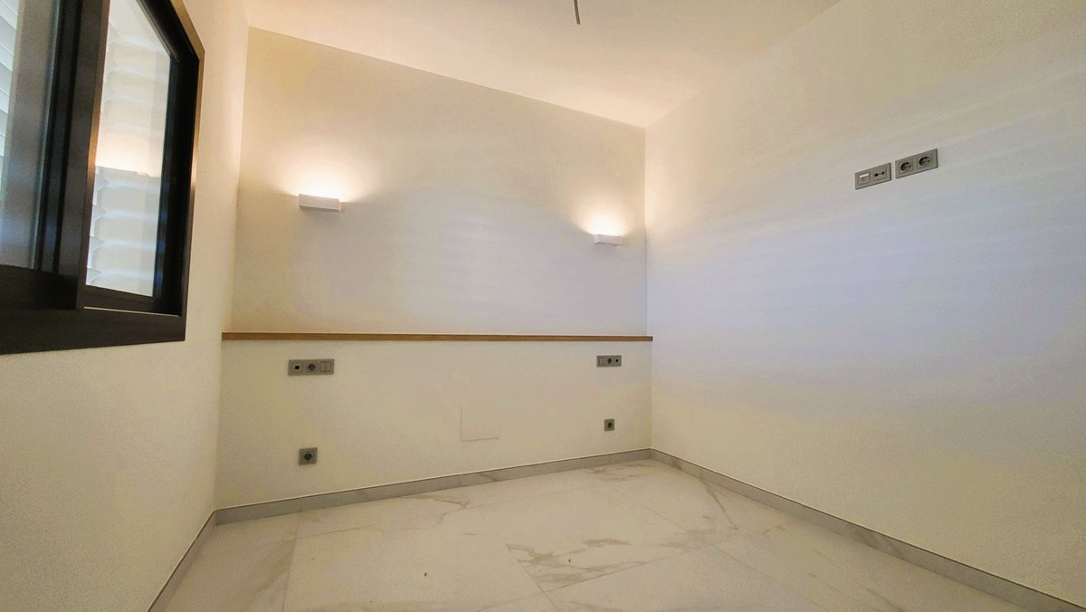 Main bedroom with ensuite bathroom and walk-in closet. This apartment is distinguished by the ingenious movable wall that connects the master bedroom-suite to the living room. This elongated sliding door is designed to duplicate the entrance of natural light and enjoying much better views. This easy interaction between the living spaces creates a flexible open area that is designed for you to enjoy the climate and lifestyle of Southern Spain. This clever design not only maximises the natural light of the Costa del Sol in both rooms, but also allows you to admire the splendid views from every corner of your home.