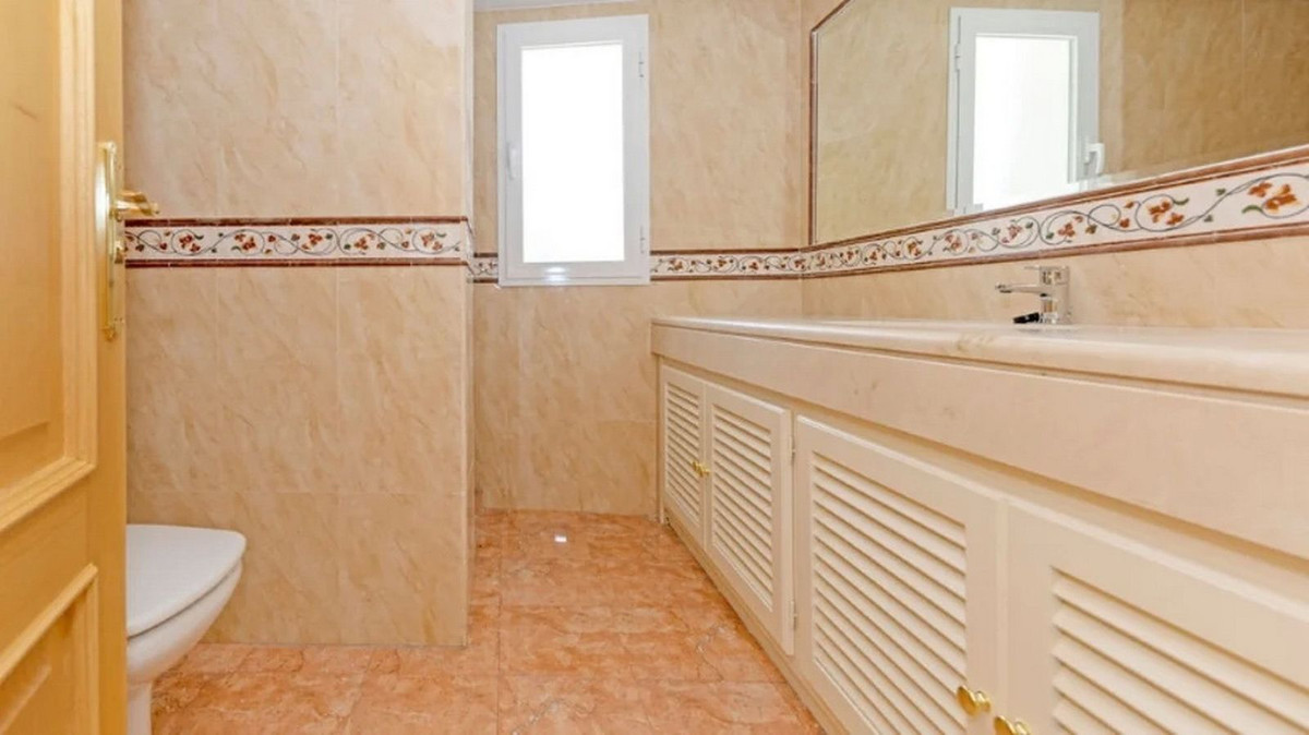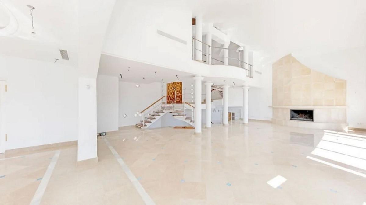 Detached house in the El Almendro Urbanization, Benahavís. It has a surface area of 919 m² distributed over 4 floors. The ground floor comprises a spacious living room, dining room, kitchen, access walkway to the hallway, 2 bedrooms with en-suite bathrooms, and 2 terraces. The upper floor, accessed from the street via the entrance porch, consists of an entrance hall, corridor, 1 bedroom with dressing room, 1 bathroom, and a terrace. The semi-basement level features a spacious garage with room for several vehicles, a games room, and two bedrooms with en-suite bathrooms. The basement level includes a bar area, dressing room, games room, and bathroom. The property sits on a 3,868 m² plot, which includes an entrance porch, parking area, and a large private garden with a swimming pool and jacuzzi, all with sea views. It comes equipped with built-in wardrobes, a fitted kitchen, a fireplace, and pre-installation for air conditioning. Located in a quiet residential area surrounded by several golf courses.
