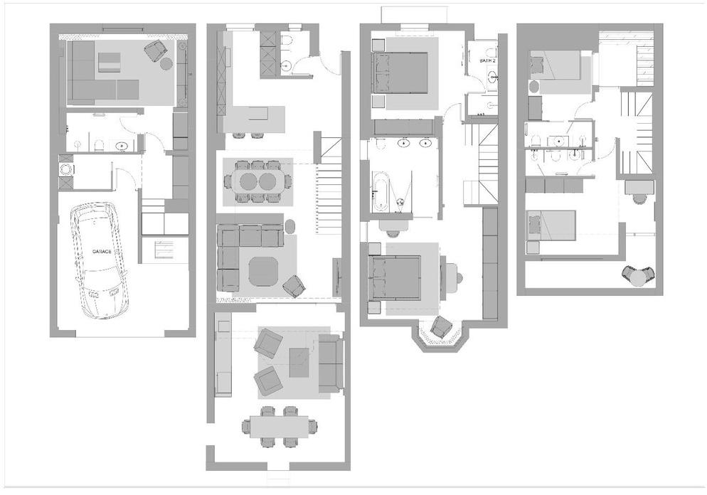 Cette maison a été entièrement rénovée avec un souci du détail exceptionnel. Elle comprend une cuisine Santos ouverte sur mesure, une cuisine extérieure aménagée et une cave à vin. L'intérieur est entièrement meublé avec du mobilier sur mesure, notamment des placards laqués intégrés avec éclairage LED, ainsi que des lits avec rangements intégrés et des matelas haut de gamme de 35 cm avec surmatelas.