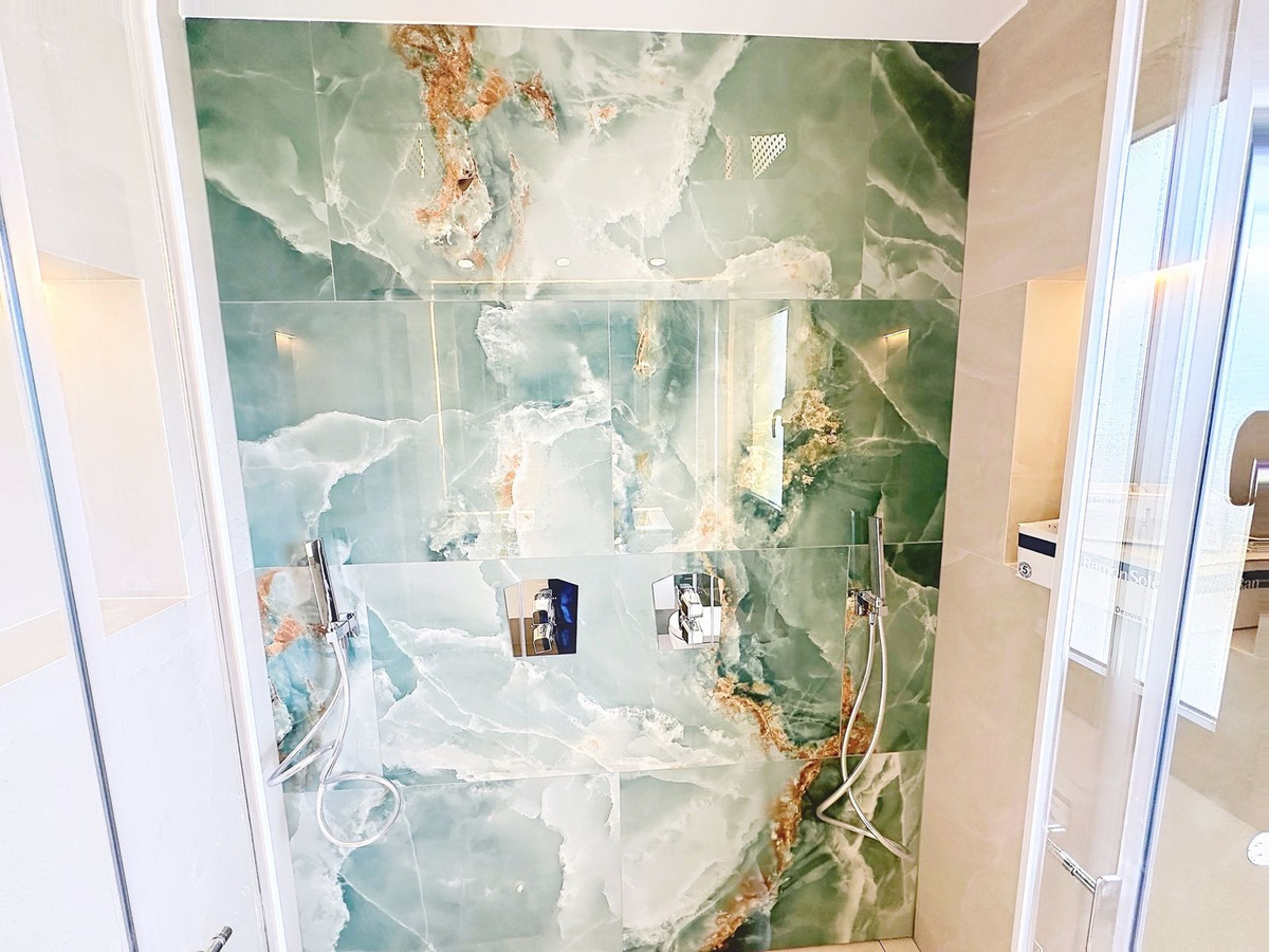 La terrasse de 47 m², dotée d'une élégante structure vitrée Lumon, se transforme en un espace privilégié et polyvalent : un salon supplémentaire baigné de lumière naturelle, idéal pour profiter du soleil d'hiver, dîner en toute décontraction au printemps et en automne, ou passer de longues soirées face à la mer dans un confort absolu. Un espace conçu pour tirer pleinement parti du climat exceptionnel de la Costa del Sol, tout au long de l'année.