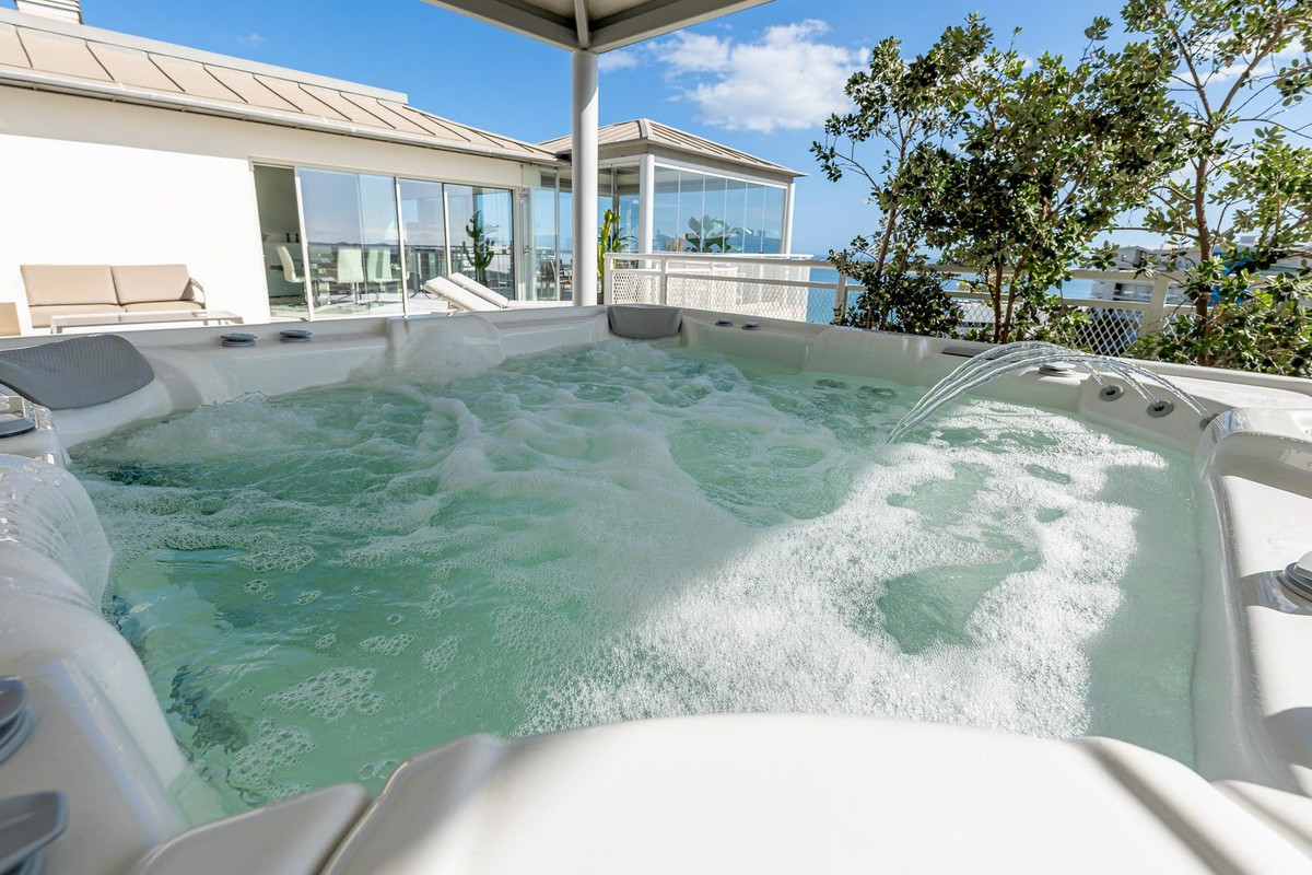 Équipements : Terrasse couverte, Ascenseur, Placards intégrés, Terrasse privée, Solarium, Salle de bains attenante, Sol en marbre, Jacuzzi, Double vitrage, Navette de courtoisie, Fibre optique