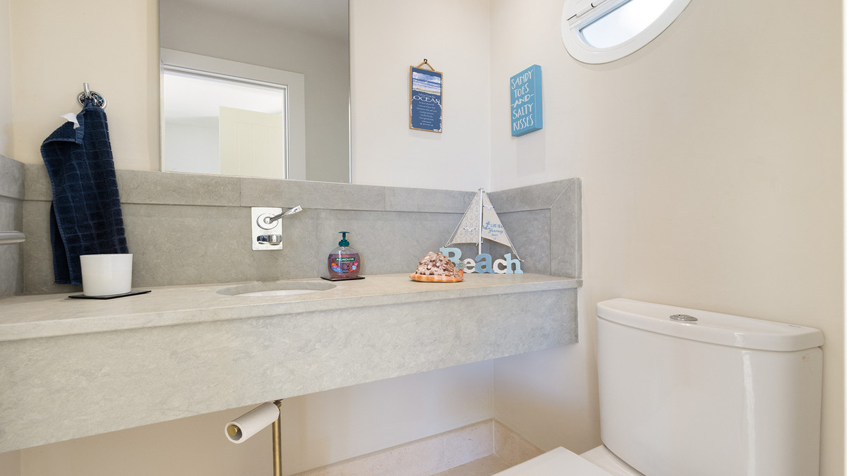 La suite parentale se distingue par sa spacieuse salle de bains attenante équipée d'un jacuzzi et d'une grande douche à l'italienne. Son atout unique réside dans sa douche semi-extérieure, offrant une vue imprenable sur la mer. La chambre bénéficie également d'un accès direct à une terrasse privée avec un panorama côtier spectaculaire.