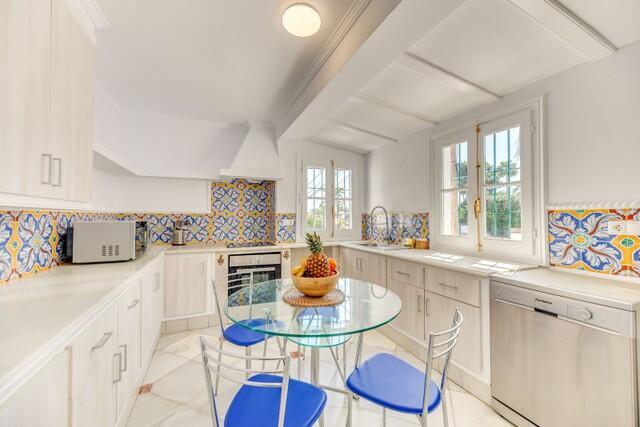 Villa, meublé, cuisine équipée, Parking: Grand garage, Piscine: privée, Jardin espagnol, Orientation: Sud