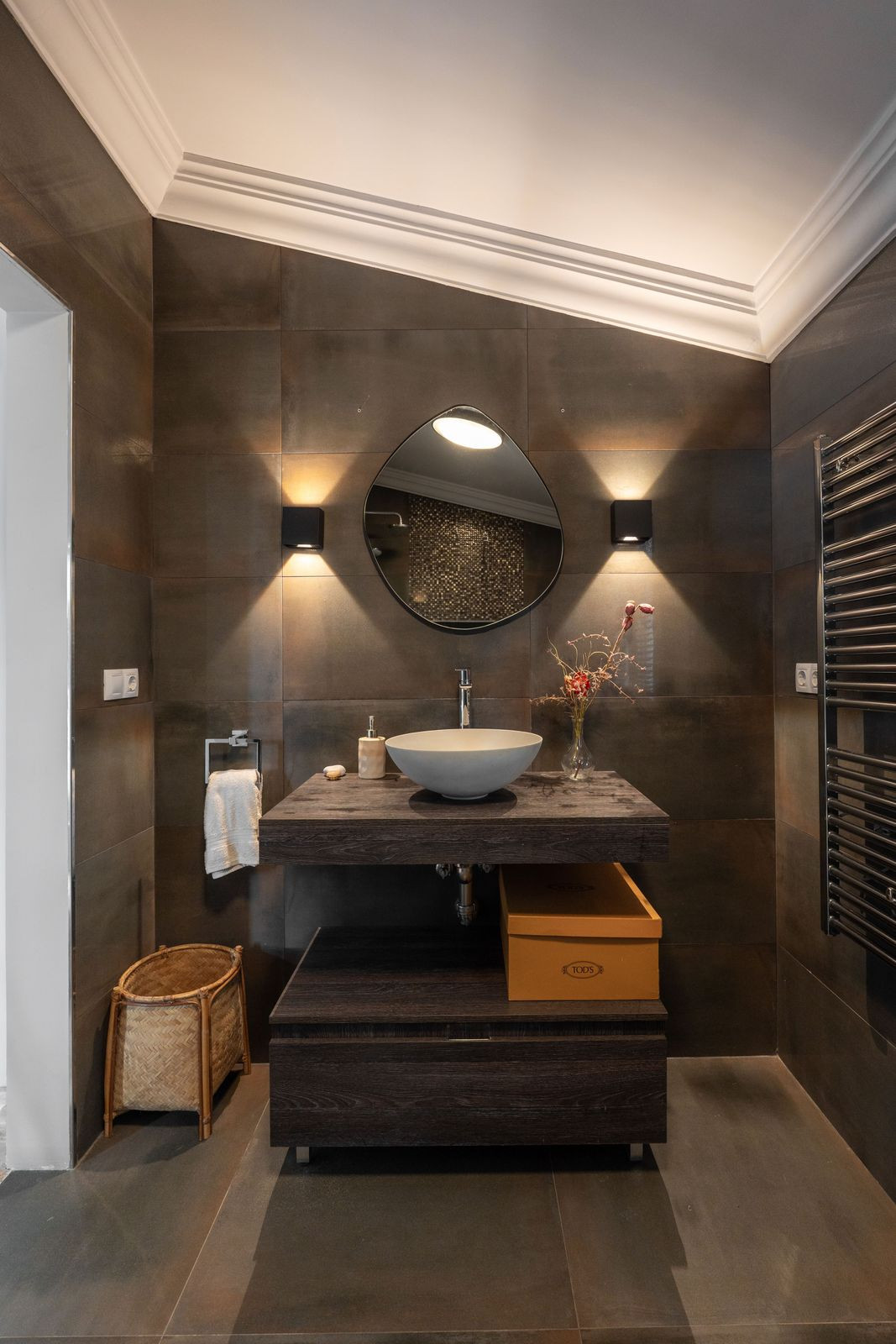 L'étage supérieur abrite une magnifique suite parentale avec terrasse privée, bureau, dressing et une luxueuse salle de bains attenante équipée d'une double vasque, d'une baignoire îlot et d'une douche à l'italienne. Une autre chambre avec salle de bains privative, également située à cet étage, bénéficie elle aussi d'une terrasse privée.