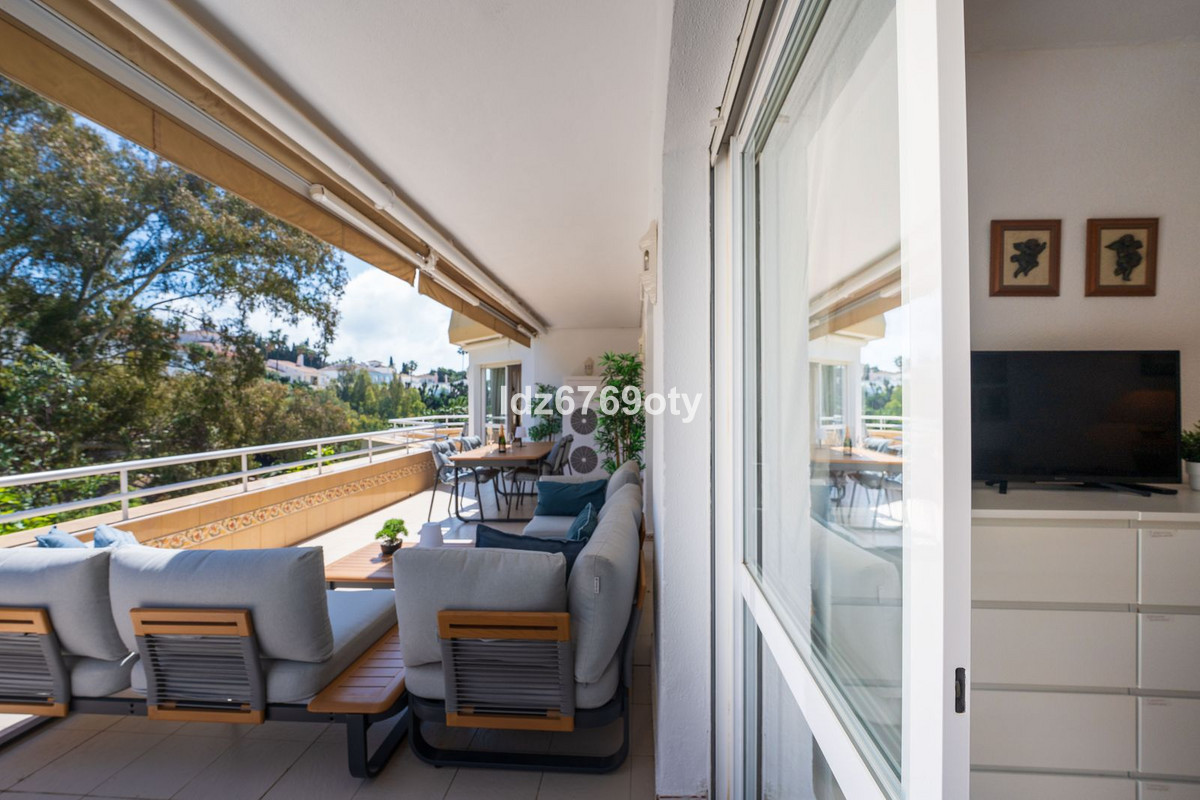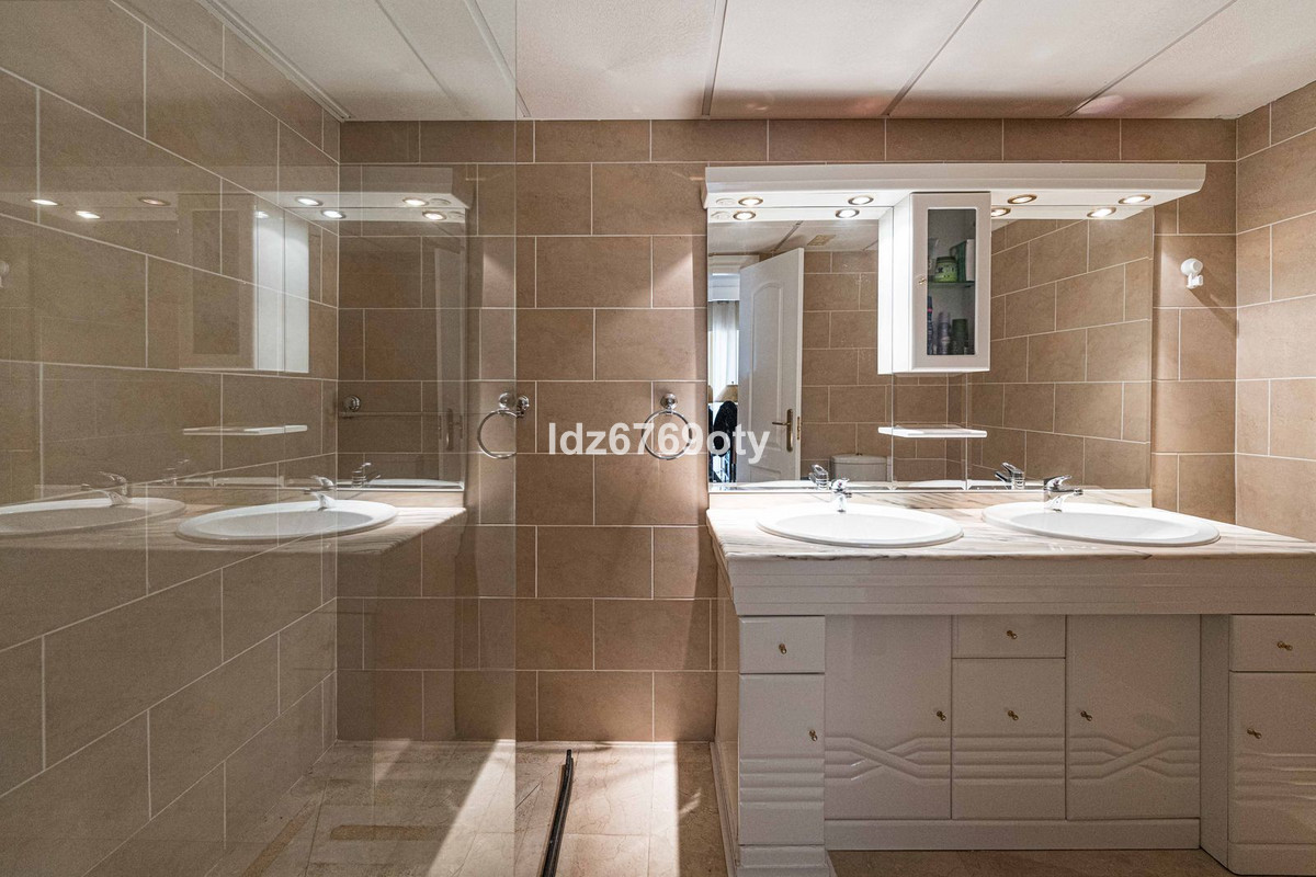 Un appartement de luxe spacieux et impeccablement entretenu, idéalement situé à proximité du célèbre golf de Torrequebrada à Benalmádena Costa ! Ce lumineux appartement d'angle se trouve dans la charmante et intime résidence « Palmeras del Golf », un ensemble résidentiel soigné, arboré de palmiers et agrémenté de deux piscines. L'appartement comprend trois chambres, dont une grande suite parentale avec salle de bains privative équipée d'une double vasque, de rangements intégrés, d'une baignoire et de toilettes. Les deux autres chambres spacieuses se partagent une seconde salle de bains, également équipée d'une double vasque, de rangements intégrés, d'une grande douche à l'italienne et de toilettes. Toutes les chambres disposent de grands placards intégrés et de la climatisation réversible.