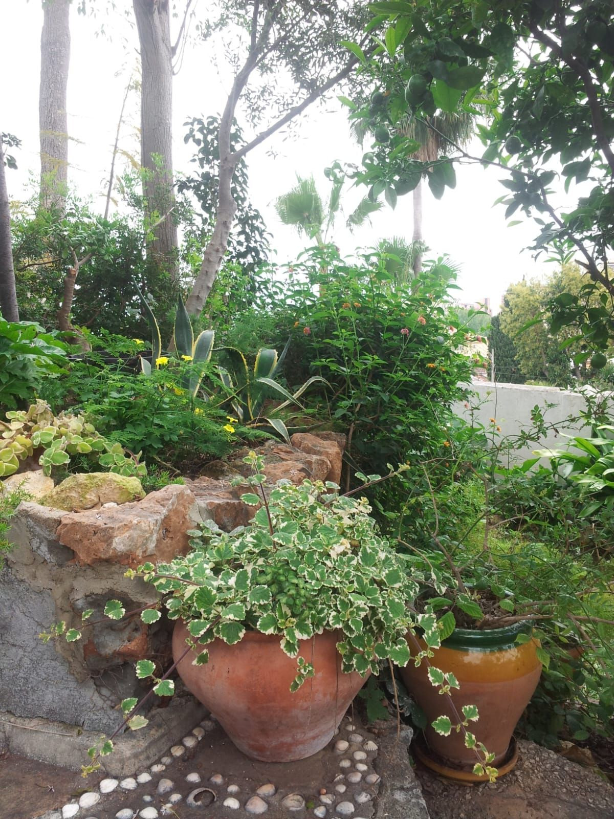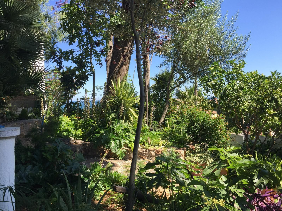 En traversant le jardin, on trouve un appartement indépendant avec vue sur la mer, comprenant une chambre, une salle de bain complète et une terrasse privée, idéal pour les invités ou comme opportunité de location.