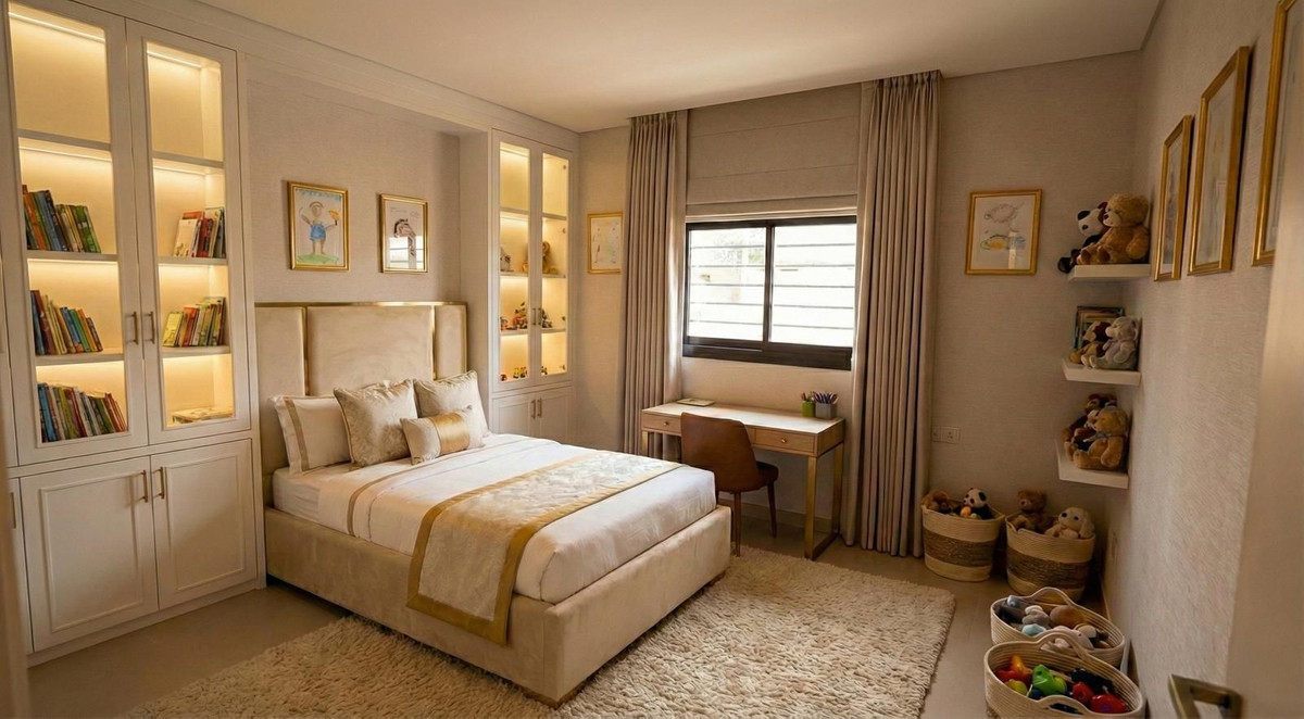 L'appartement comprend 2 chambres spacieuses et 2 salles de bains modernes, ainsi qu'un espace de vie ouvert et lumineux et une cuisine design entièrement équipée avec des appareils haut de gamme.