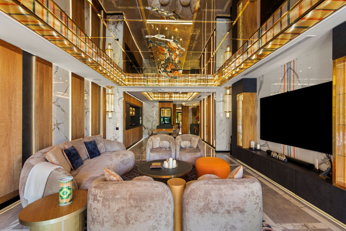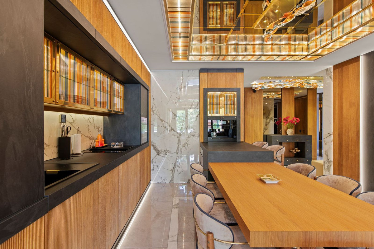 Cette propriété a fait l'objet d'une rénovation complète de très haute qualité, avec un projet de design intérieur sur mesure où chaque élément a été réalisé sur commande. Cuirs naturels, soies et bois précieux se marient harmonieusement avec le travail d'artisans spécialisés, tandis que des décorations en verre soufflé et des pièces uniques ornent l'ensemble. Le résultat est une résidence exceptionnelle, sans équivalent sur le marché actuel.